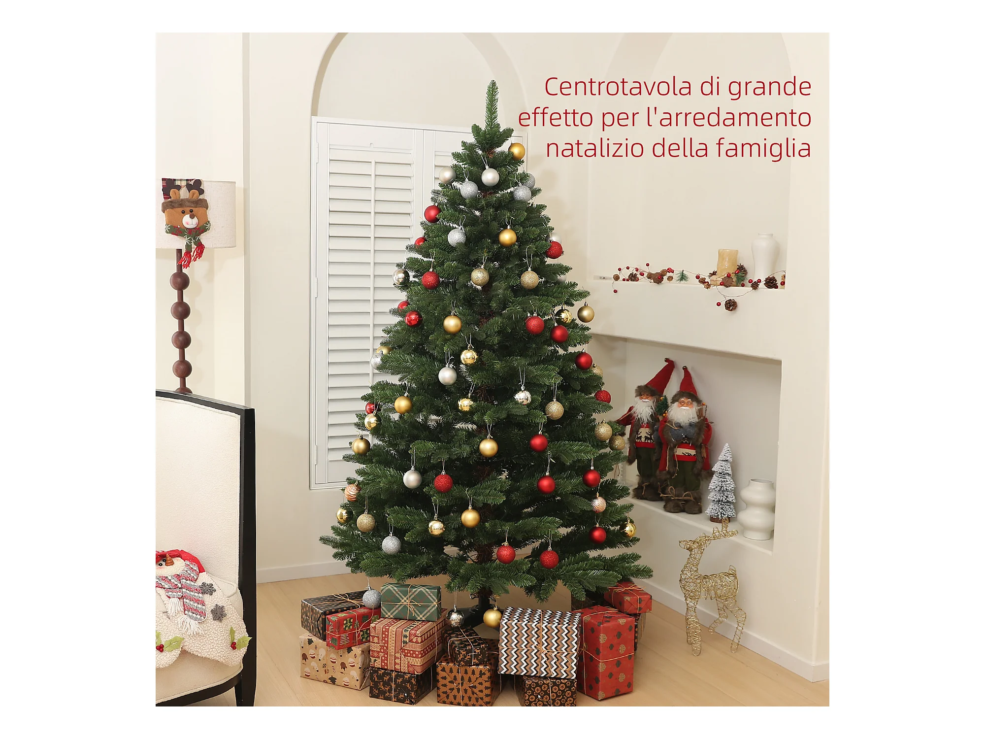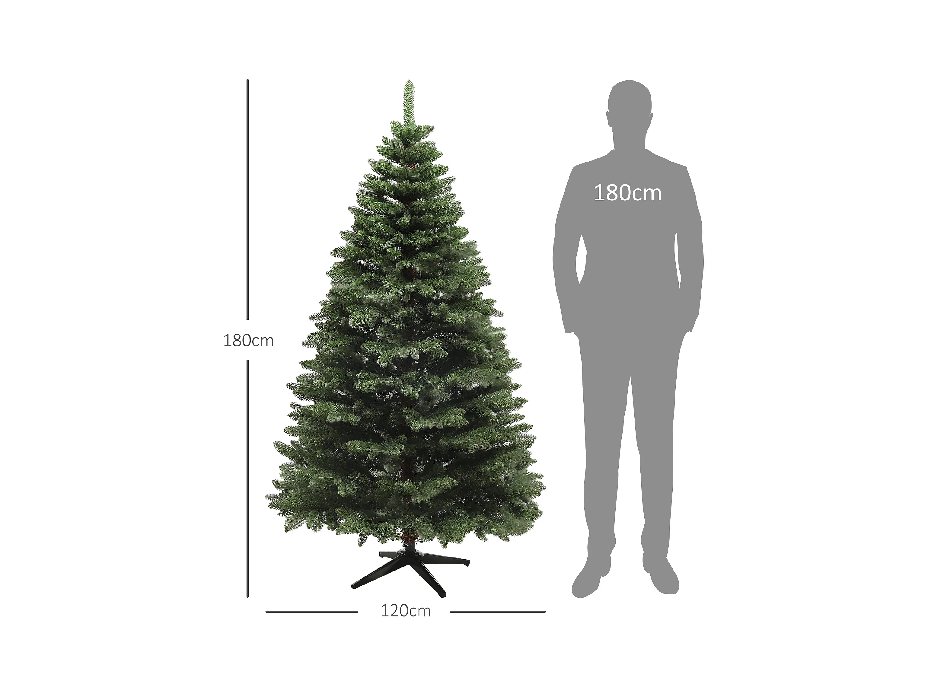 Albero di natale artificiale alto 180cm con 818 rami e base acciaio