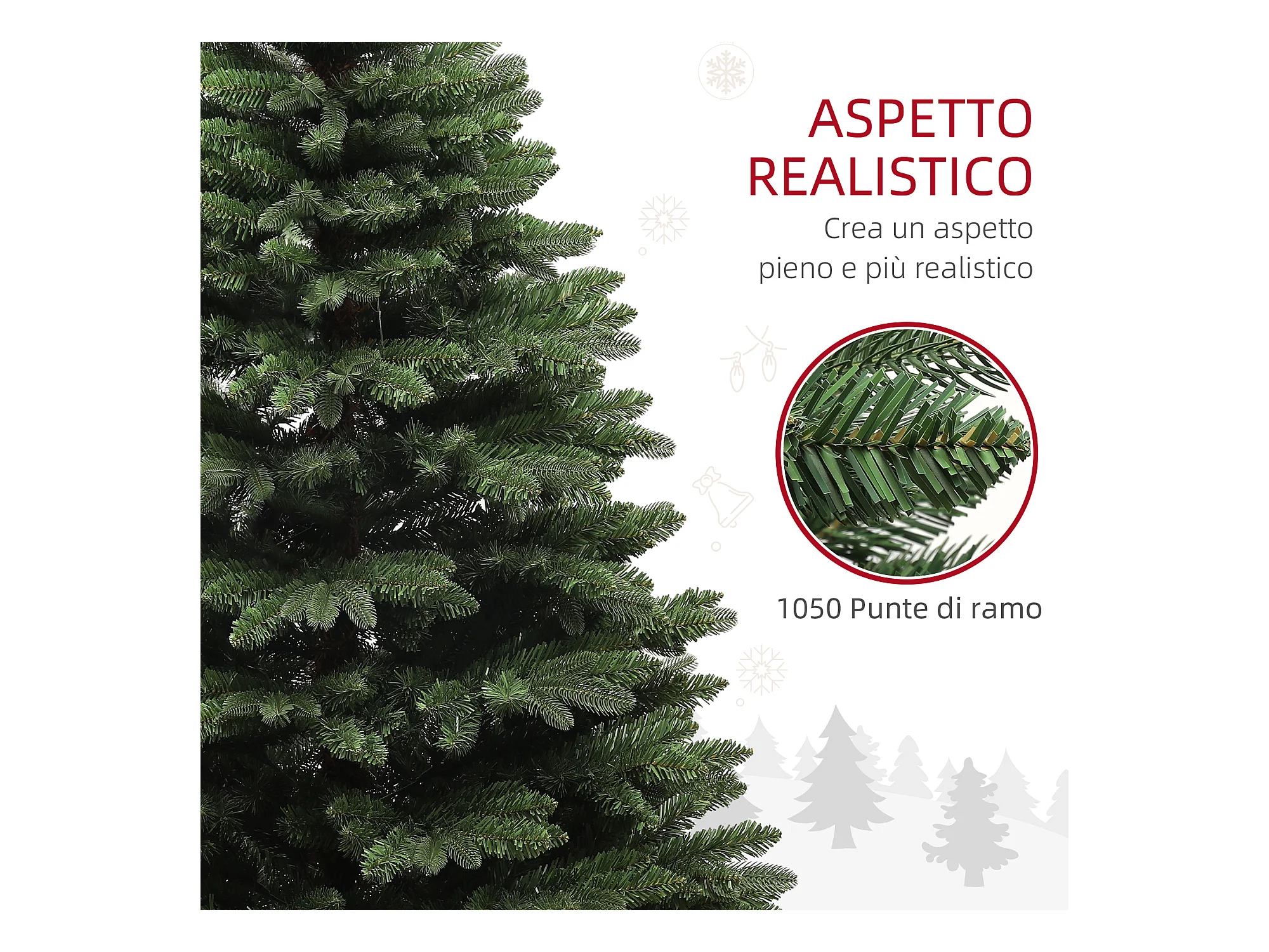 Albero di natale artificiale 1050 rami e base pieghevole Ø120x180 cm
