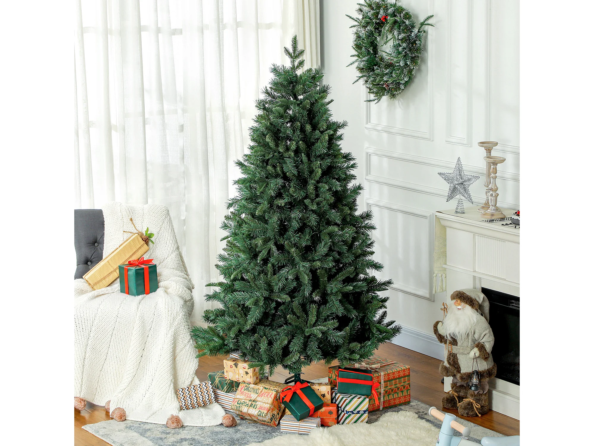 Albero di natale artificiale con rami rigogliosi in pvc verde