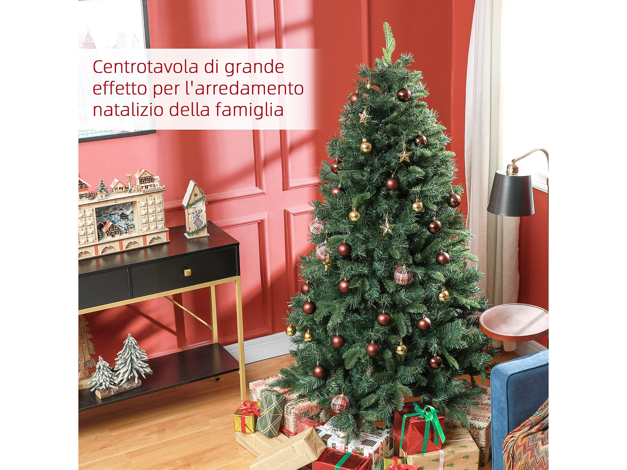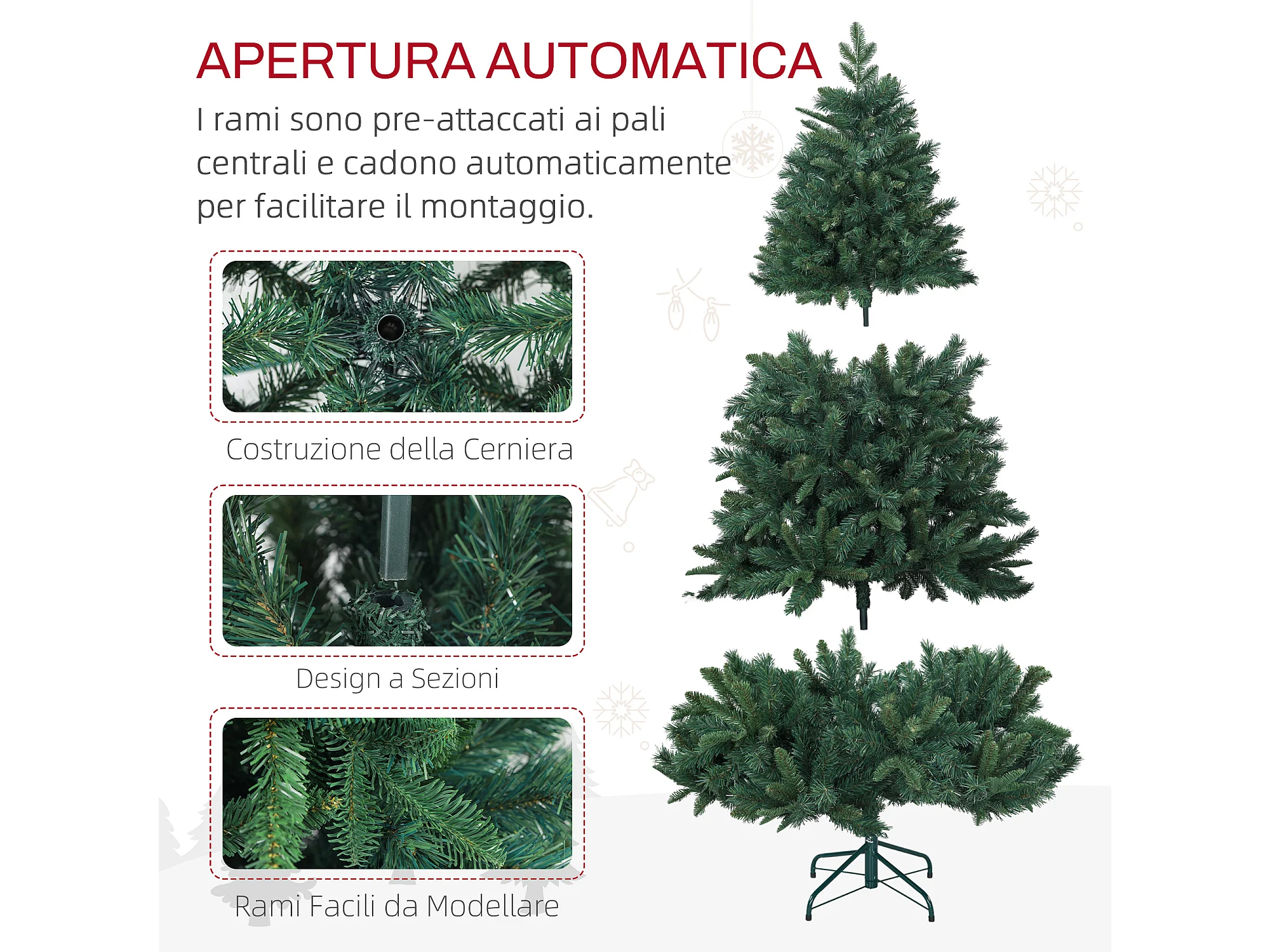 Albero di natale artificiale alto 180 cm e base in metallo pieghevole