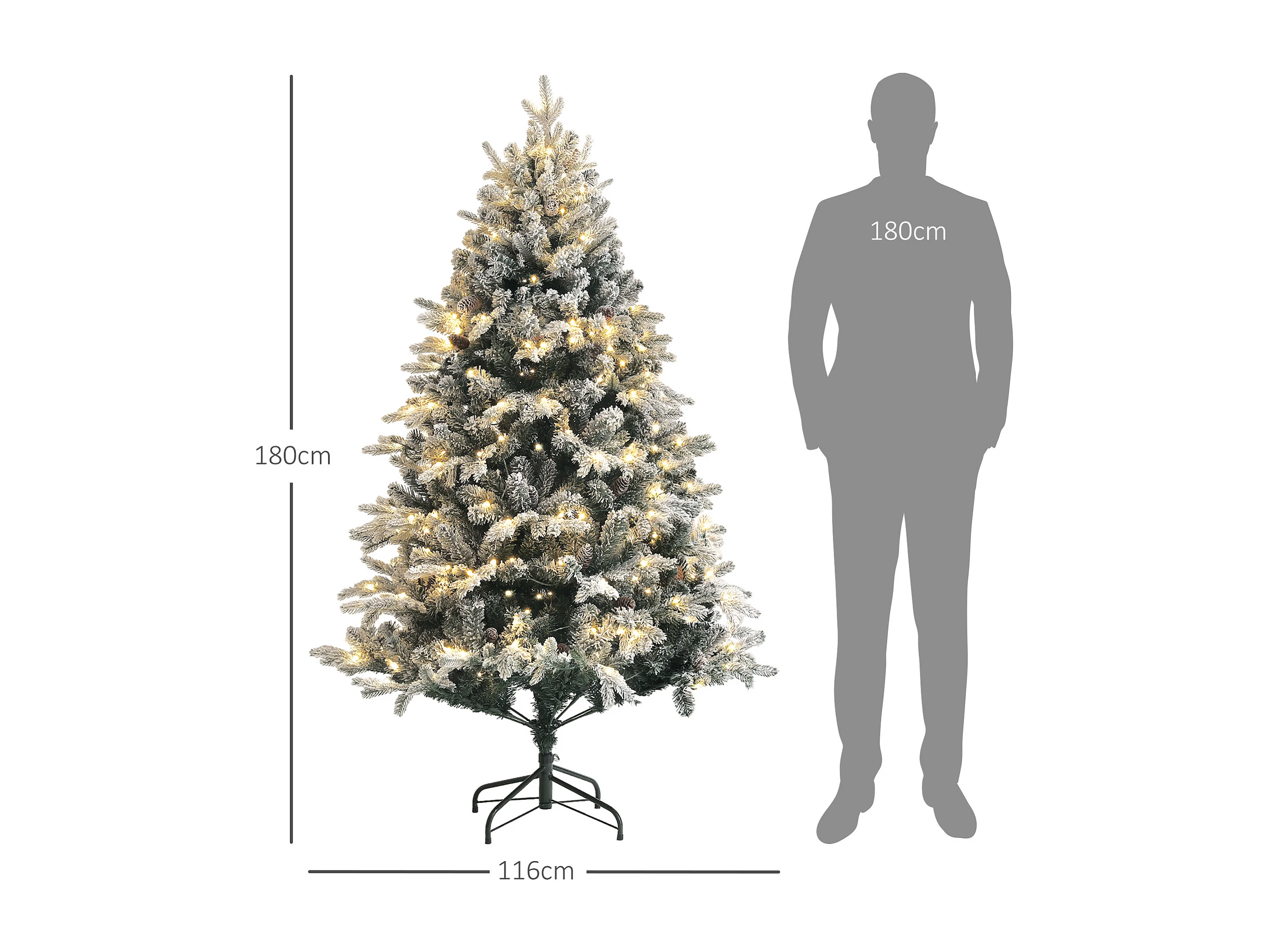 Albero di Natale Artificiale con 300 LED e Neve Floccata 180 cm