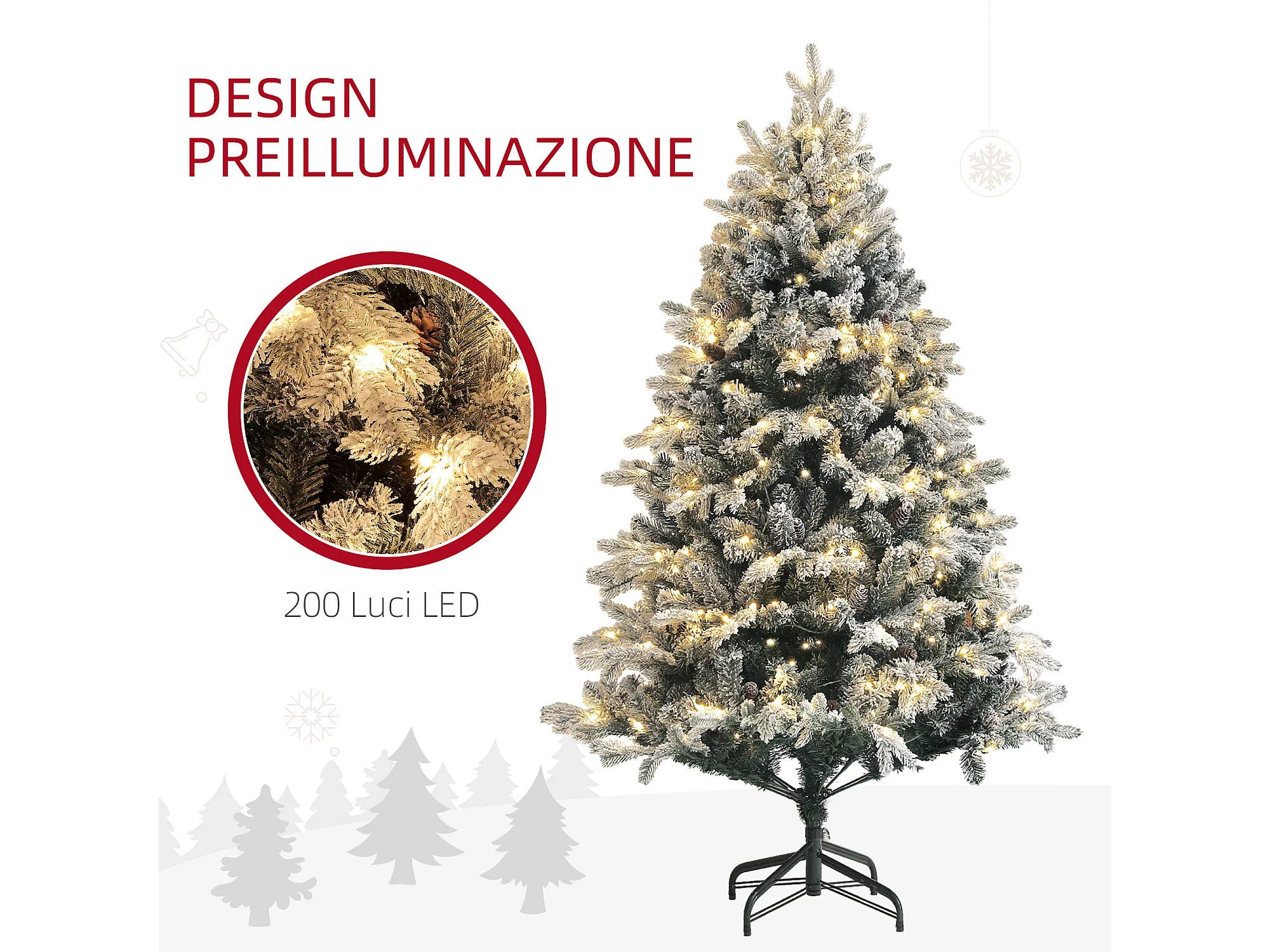 Albero di natale artificiale 180cm con luci e 793 rami innevati