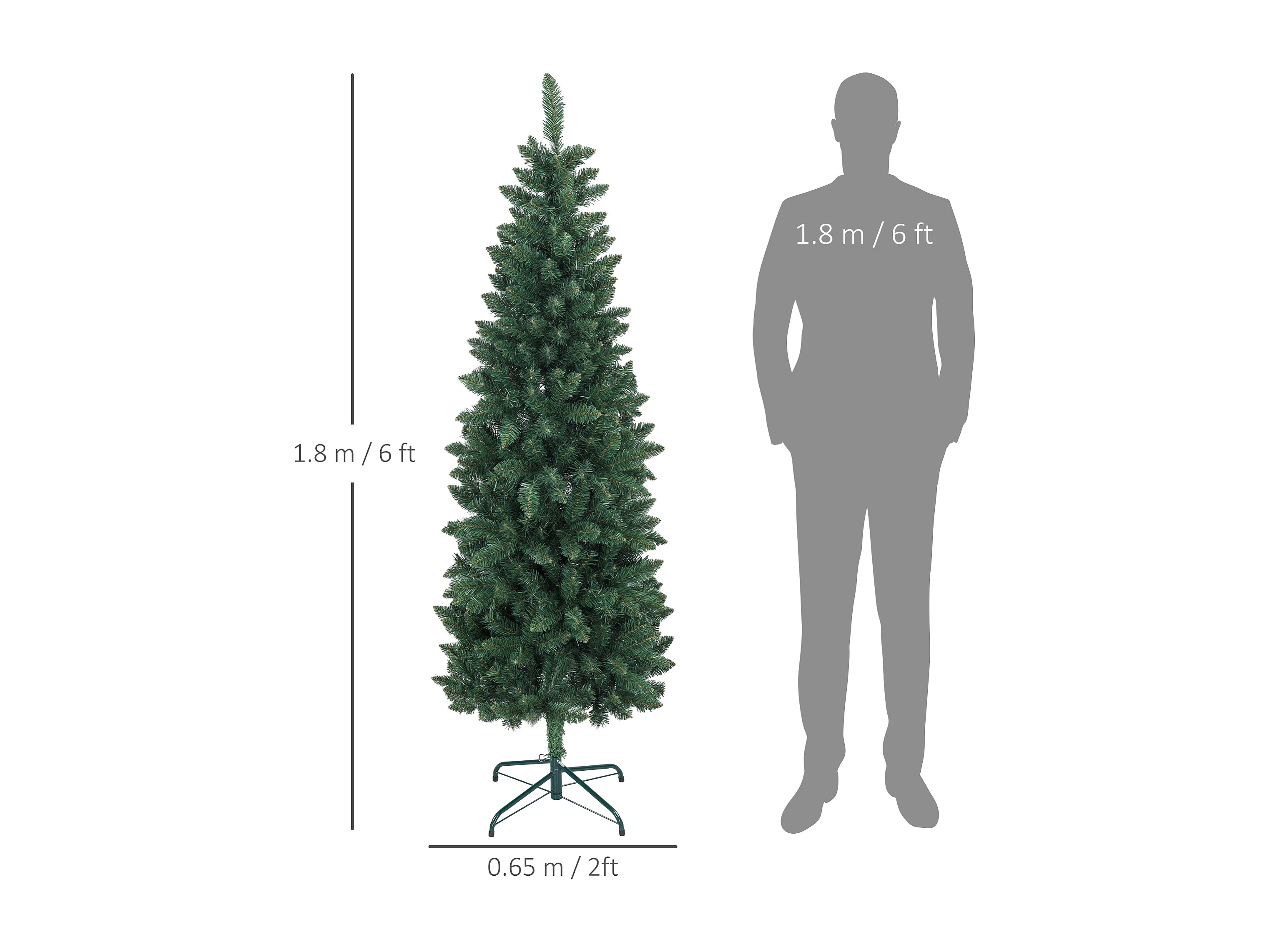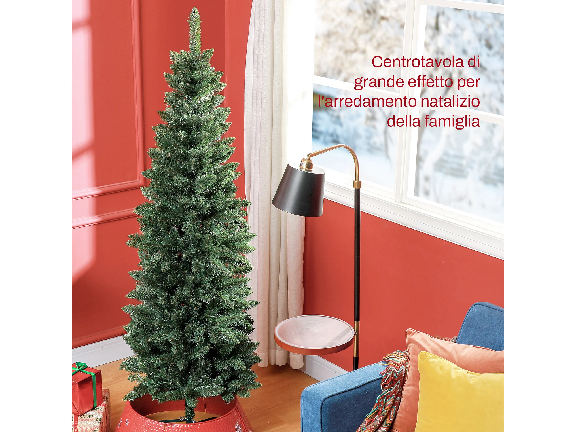 Albero di natale artificiale slim alto 195cm con 390 rami