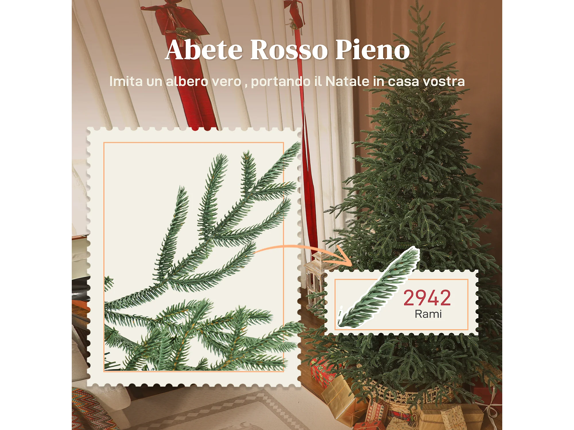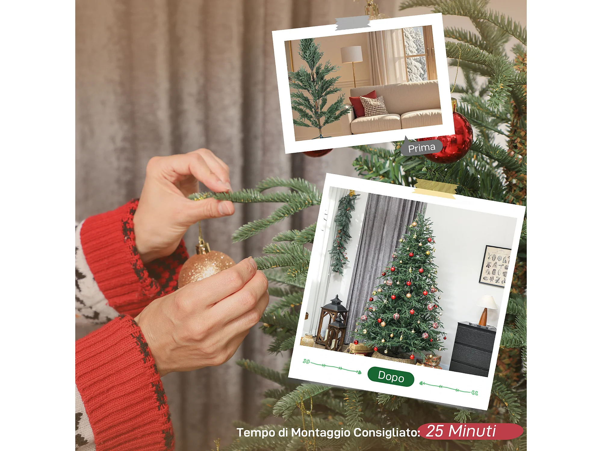 Albero di Natale artificiale alto 210 cm e base in metallo pieghevole