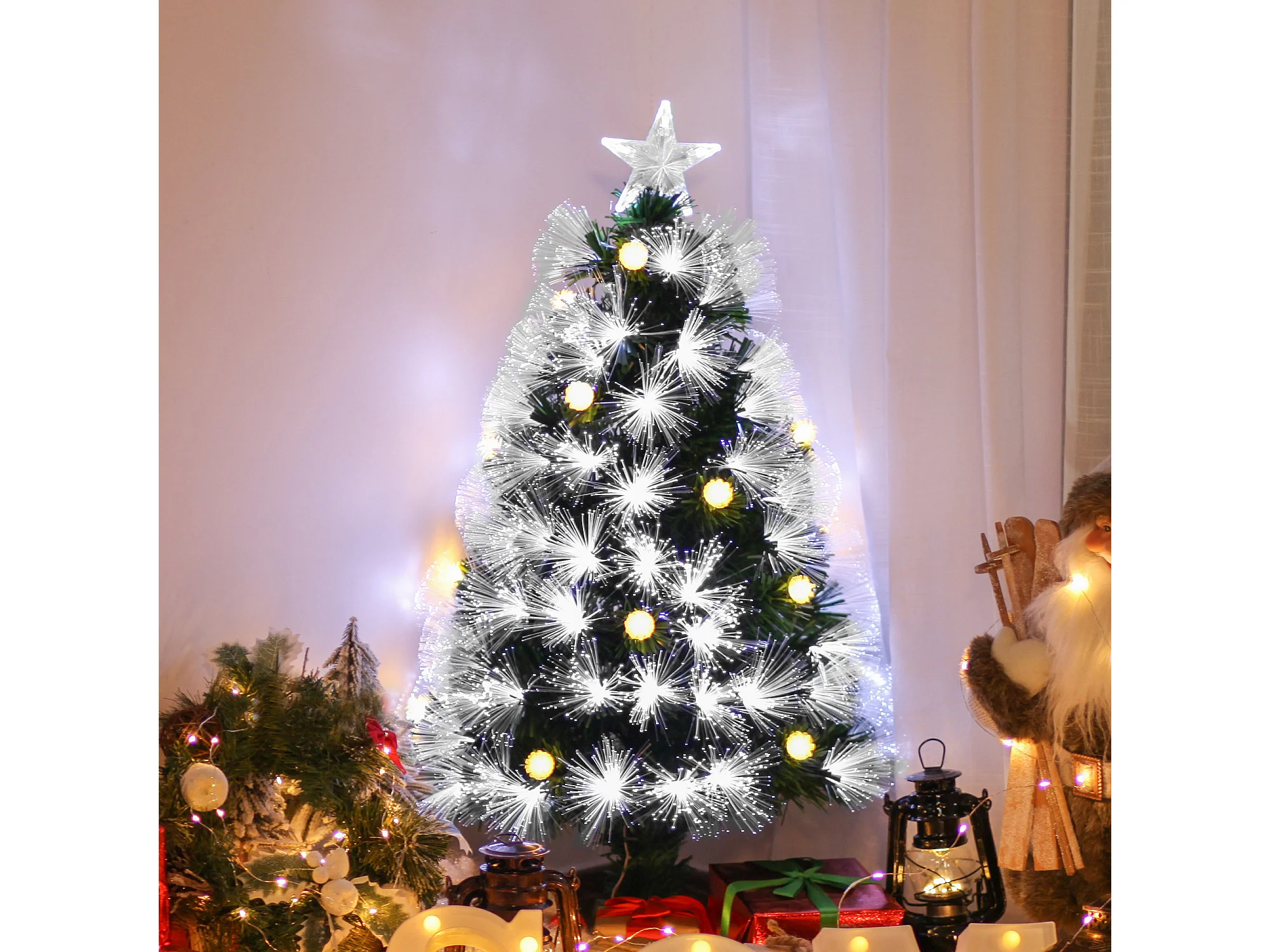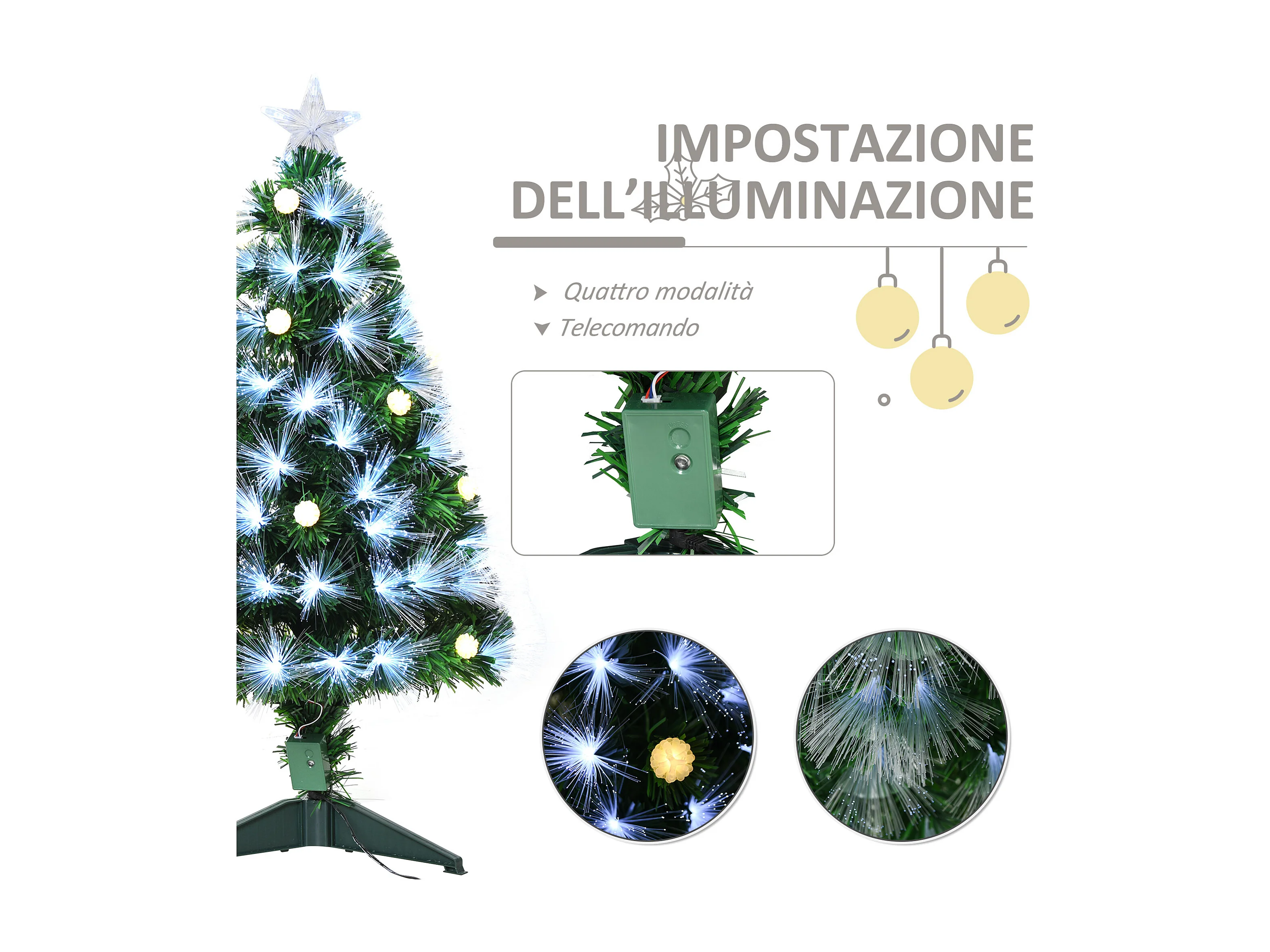 Albero di natale artificiale con led e fibre ottiche in pvc verde