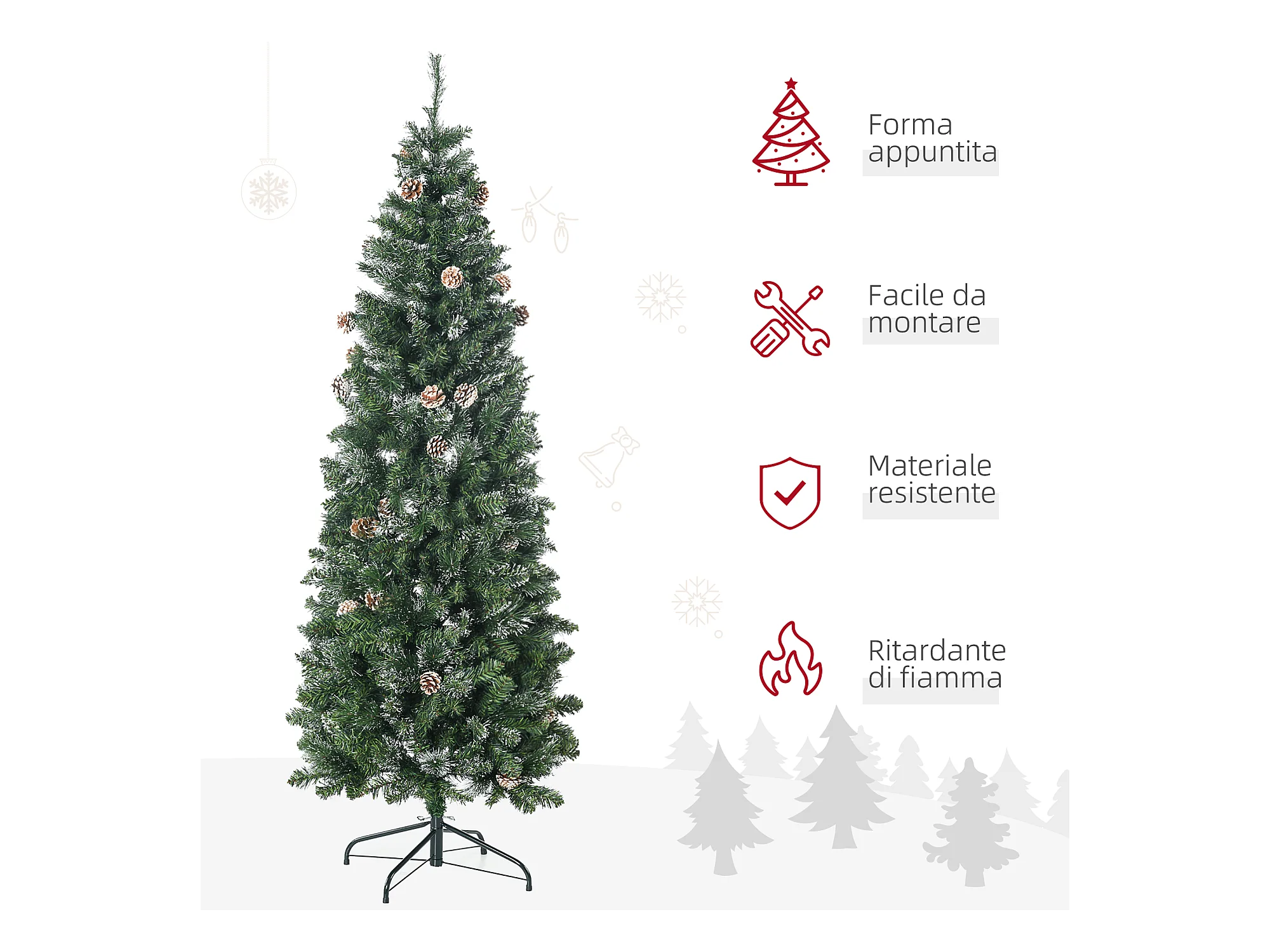 Albero di Natale Sottile con Base 270 cm in PVC