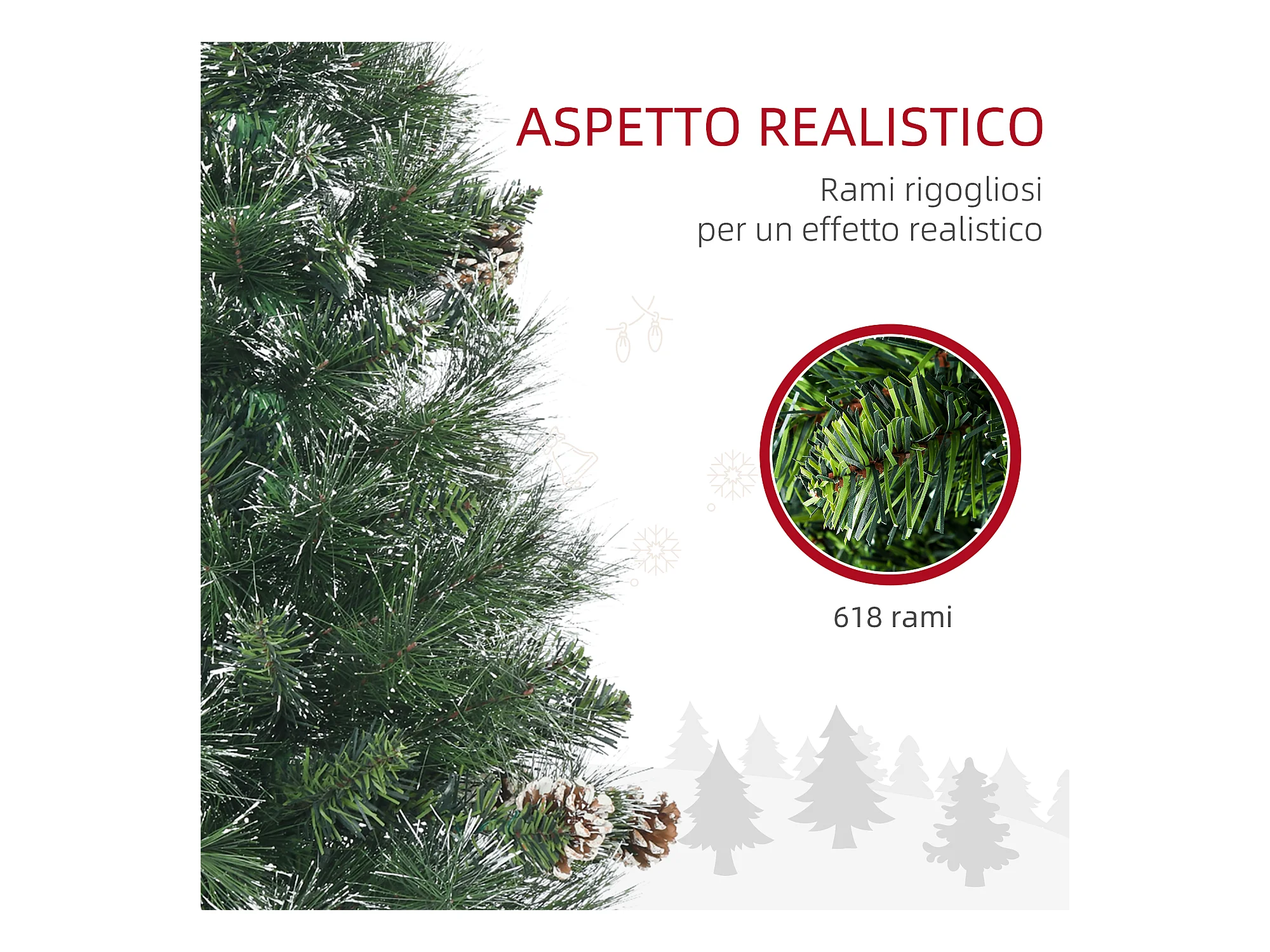 Albero di natale 180cm con 539 rami innevati e bacche rosse