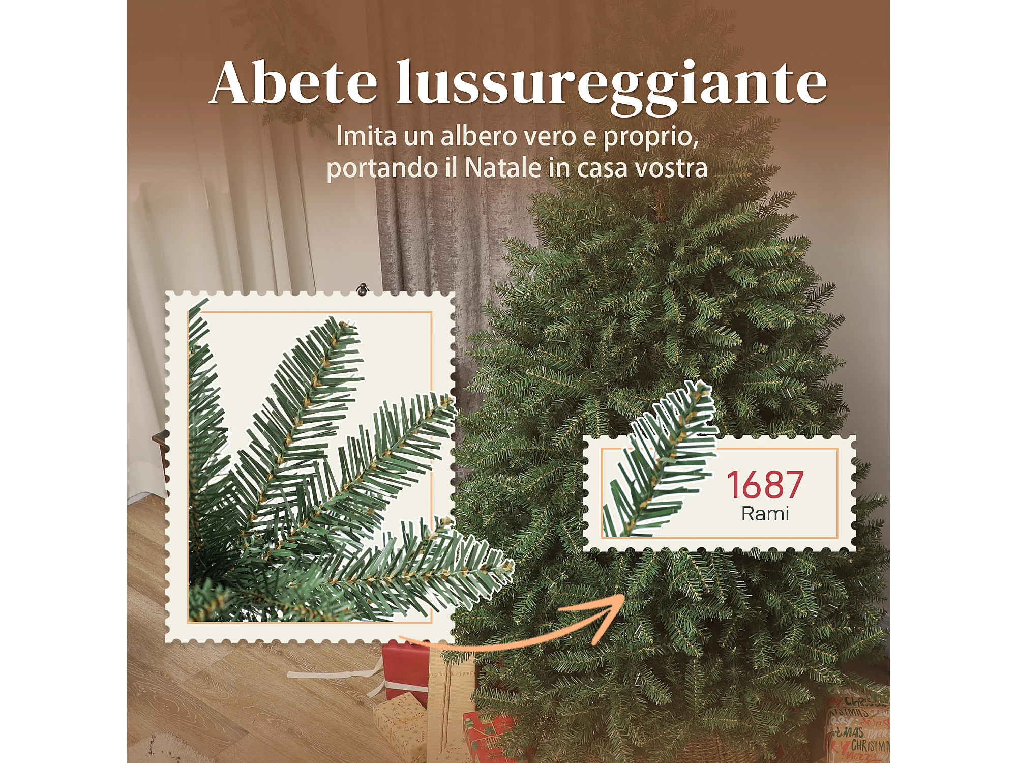 Albero di natale alto 210 cm con 928 rami pigne e bacche decorative