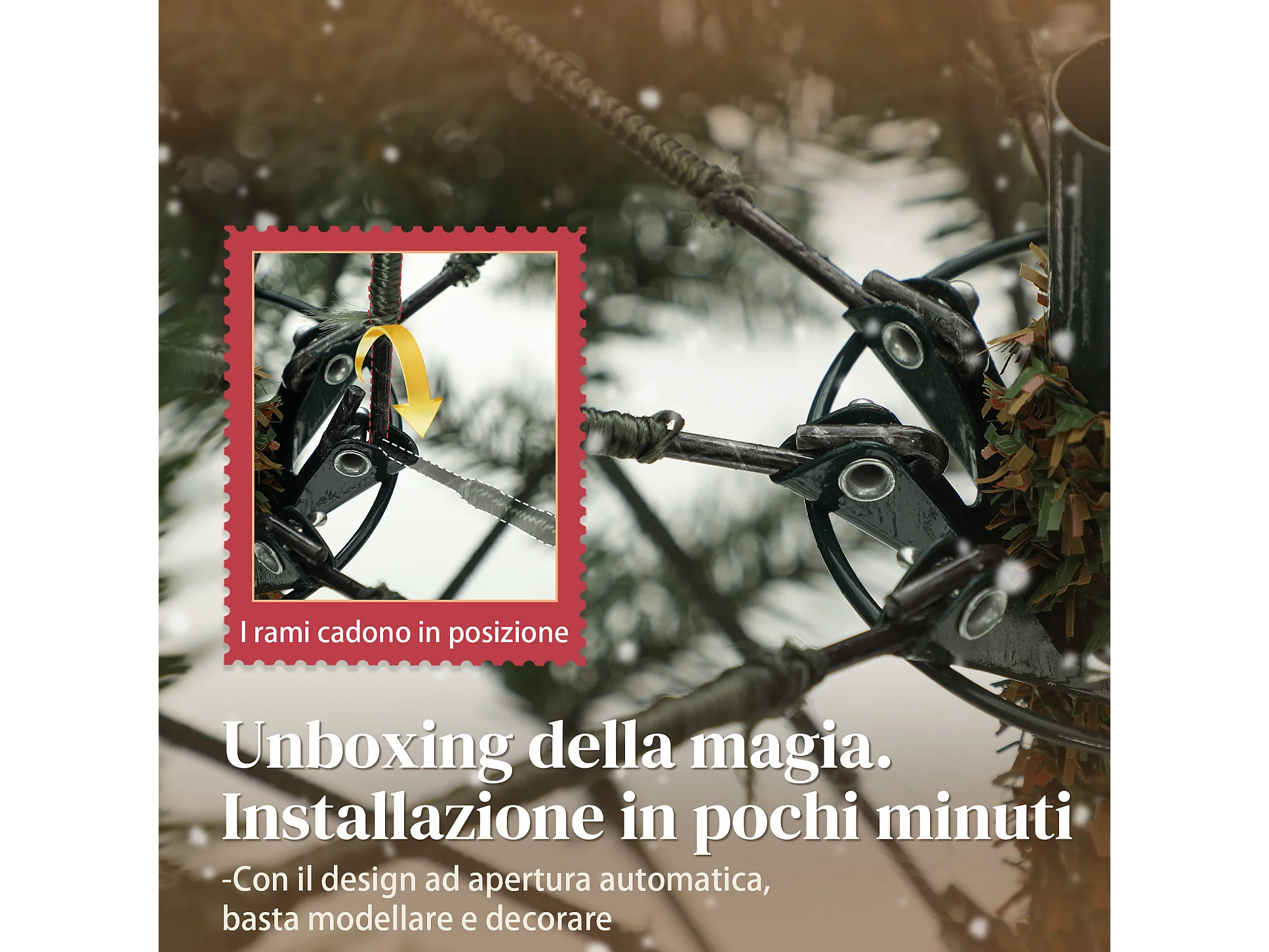 Albero di Natale innevato alto 180 cm con base in metallo pieghevole