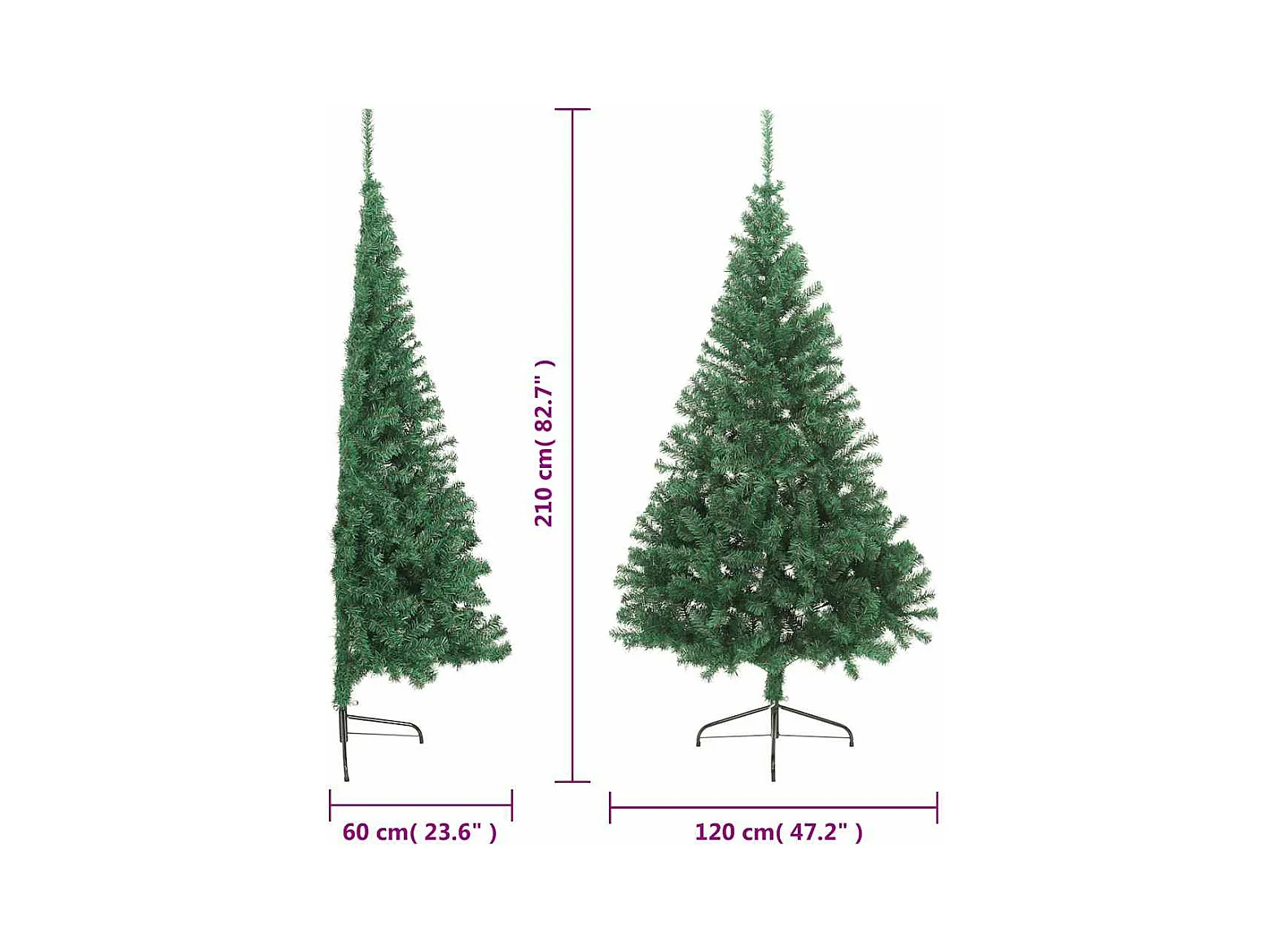 Albero di Natale Artificiale Metà con Supporto Verde 210 cm PVC