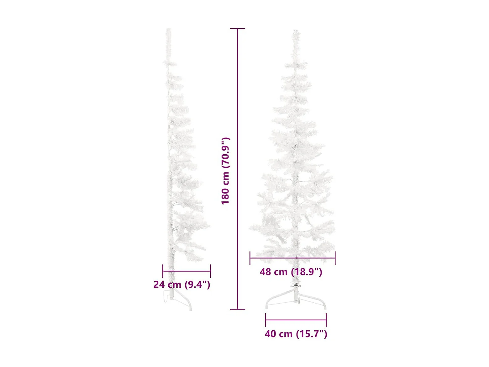 Albero di Natale artificiale mezzo sottile con supporto bianco 180 cm