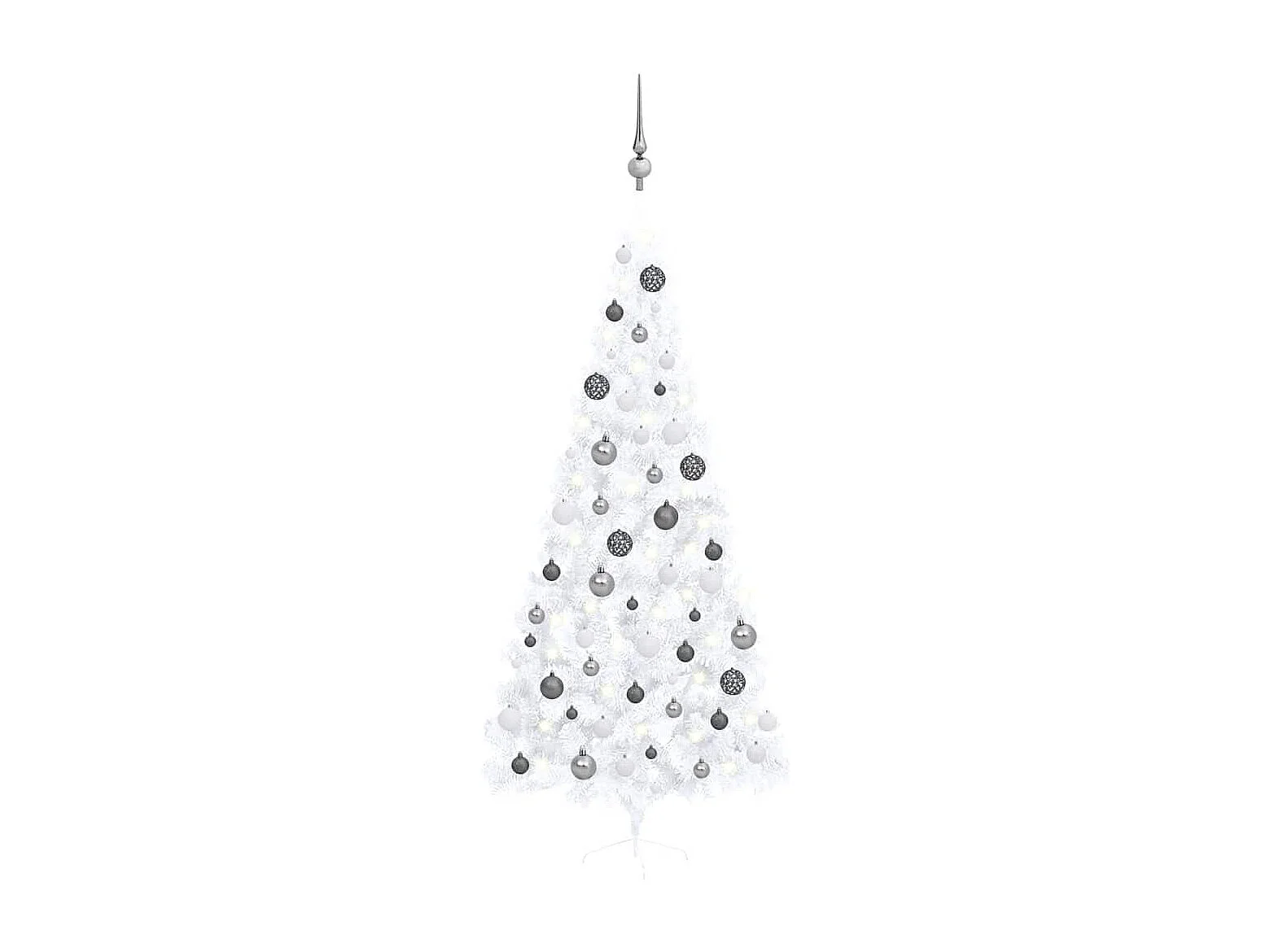 Albero di Natale artificiale preilluminato con palline bianche, 240 cm