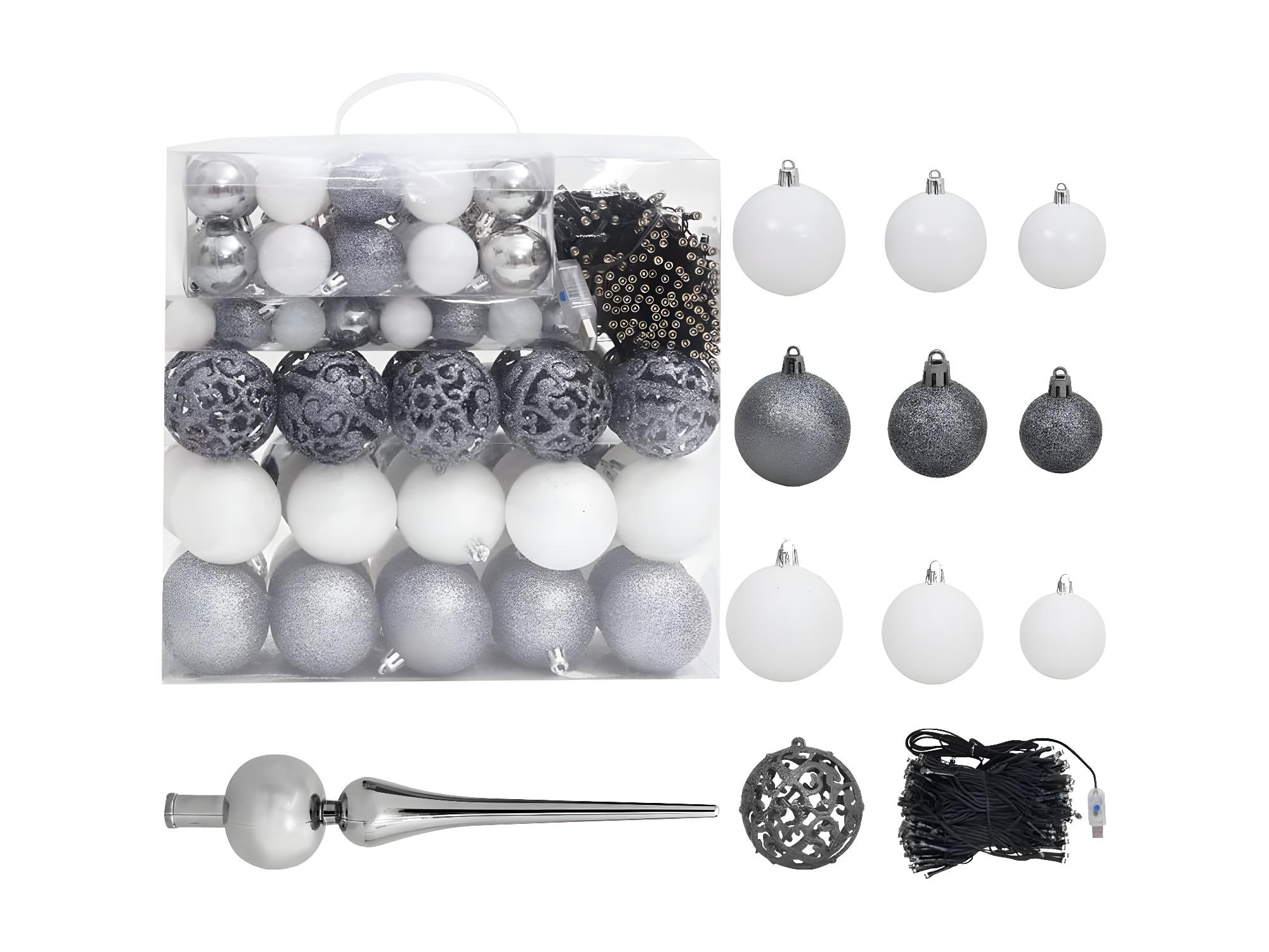 Palline per albero di Natale e pigna satinate preilluminate 150 cm