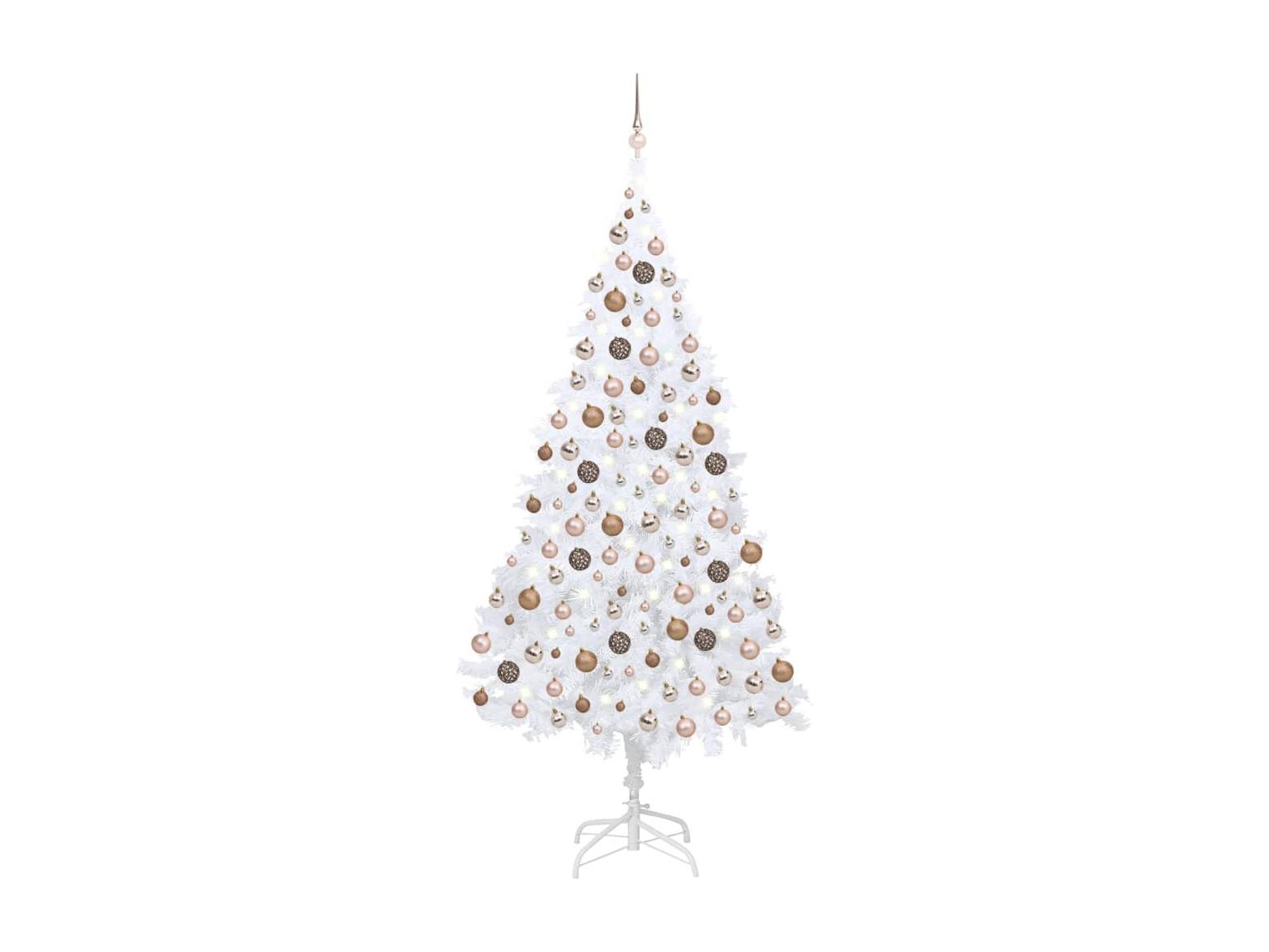 Albero di Natale artificiale preilluminato e palline bianche 180 cm