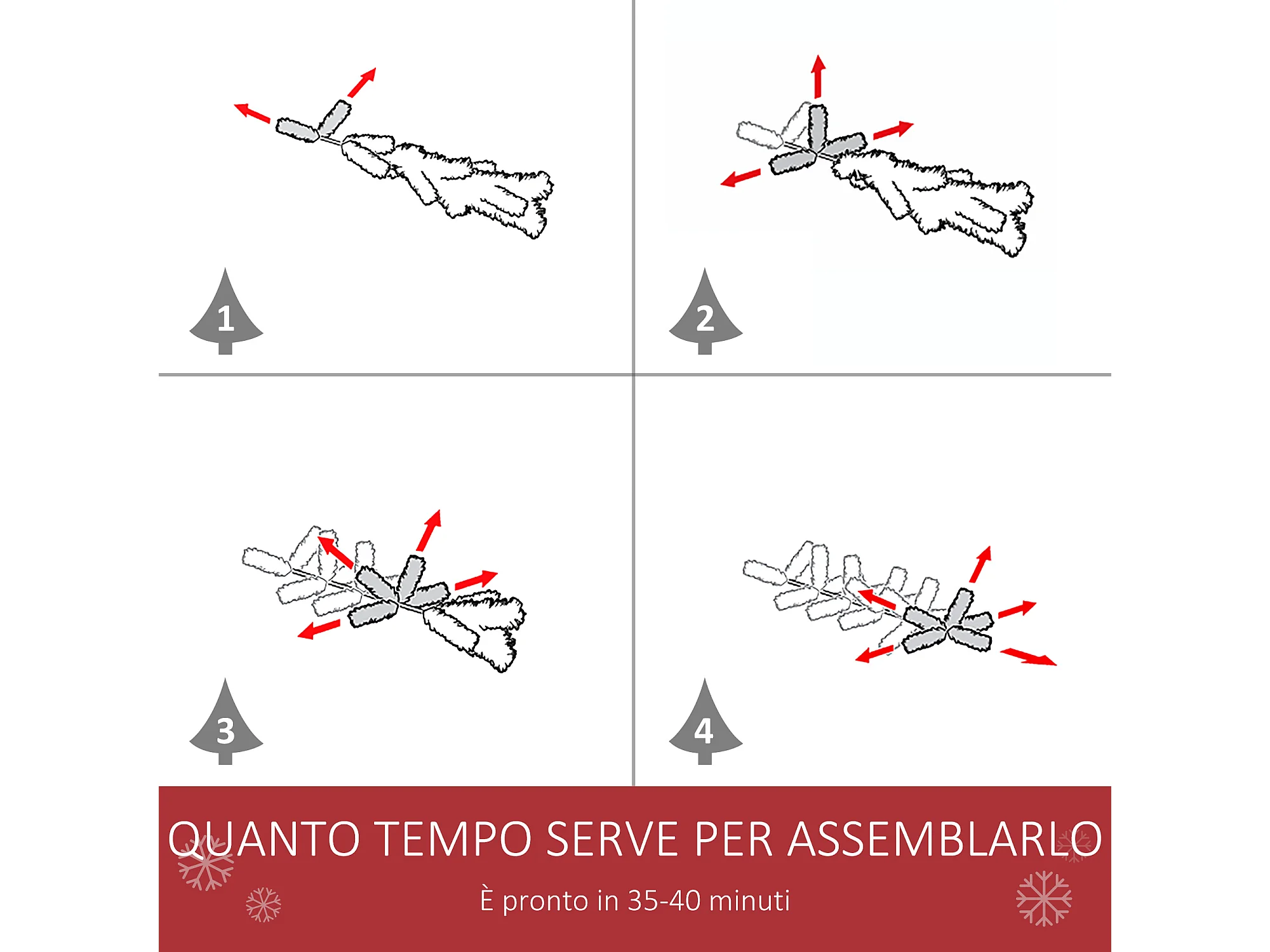 Albero di natale artificiale alto 180cm con 818 rami e base acciaio
