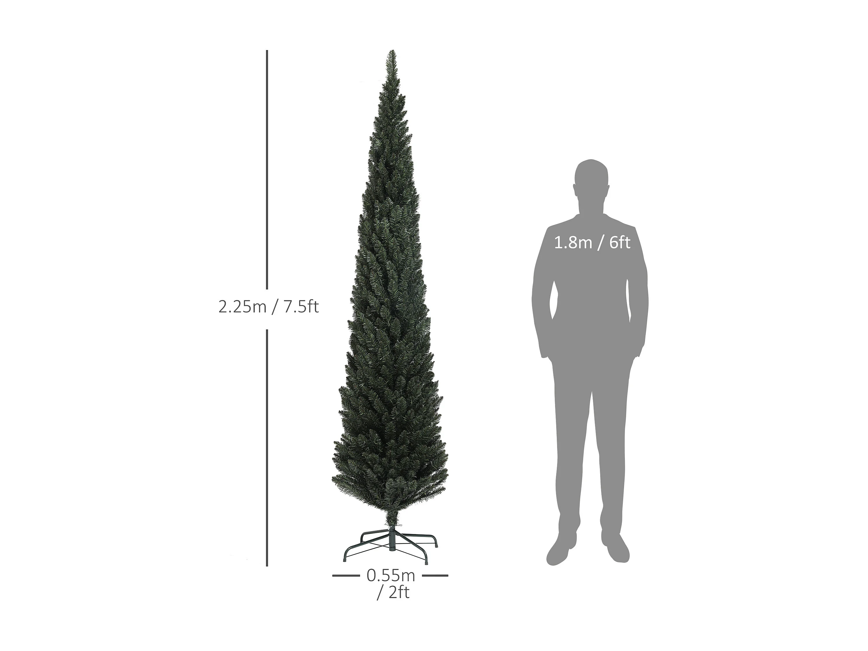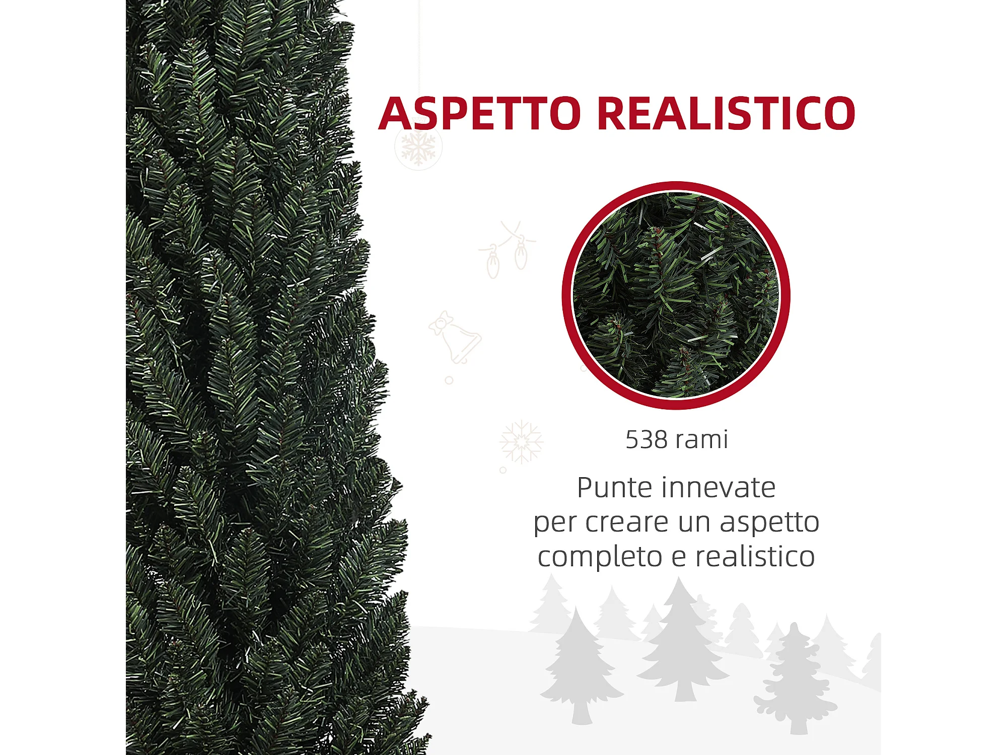Albero di natale artificiale slim alto 225cm con 538 rami