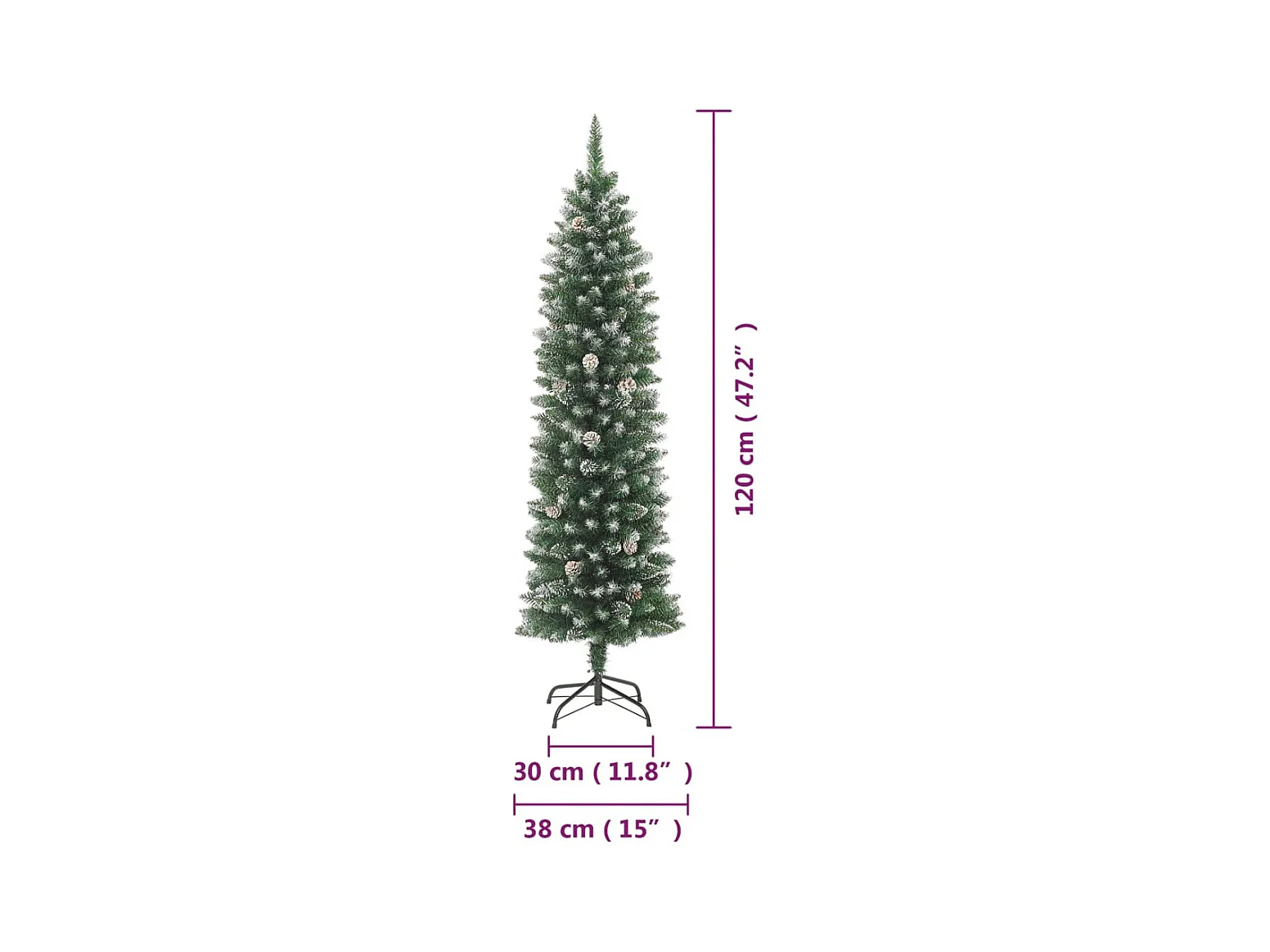 Albero di Natale artificiale sottile con supporto in PVC da 120 cm