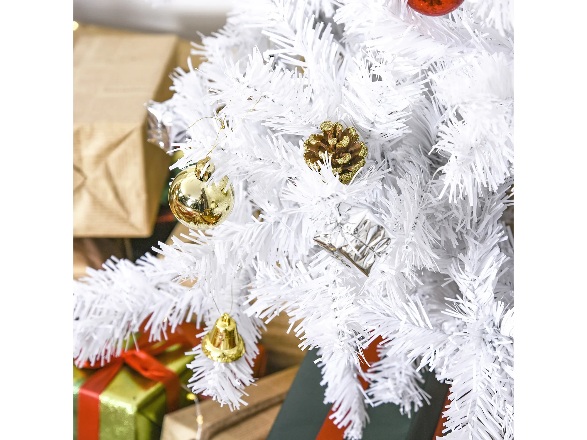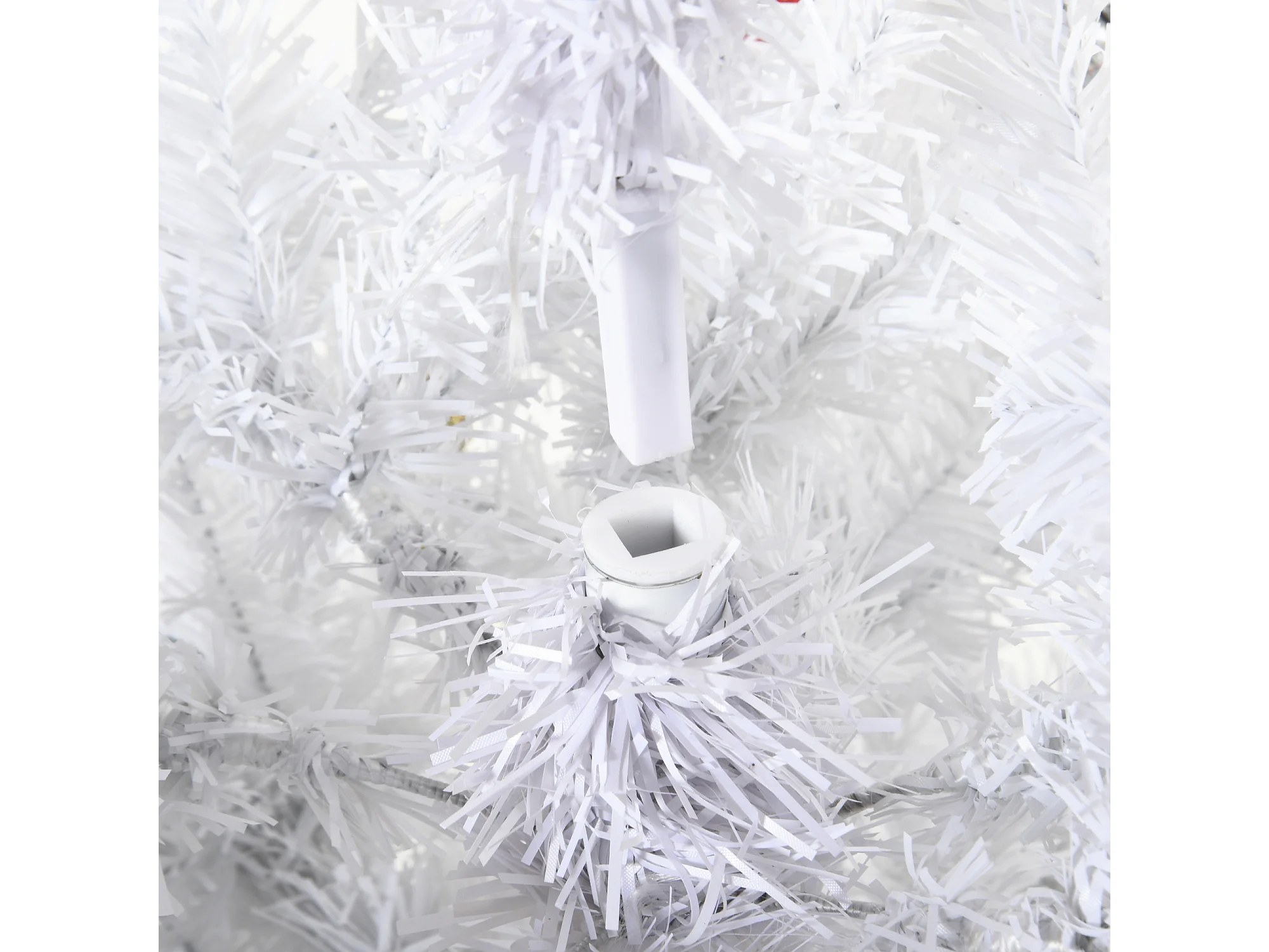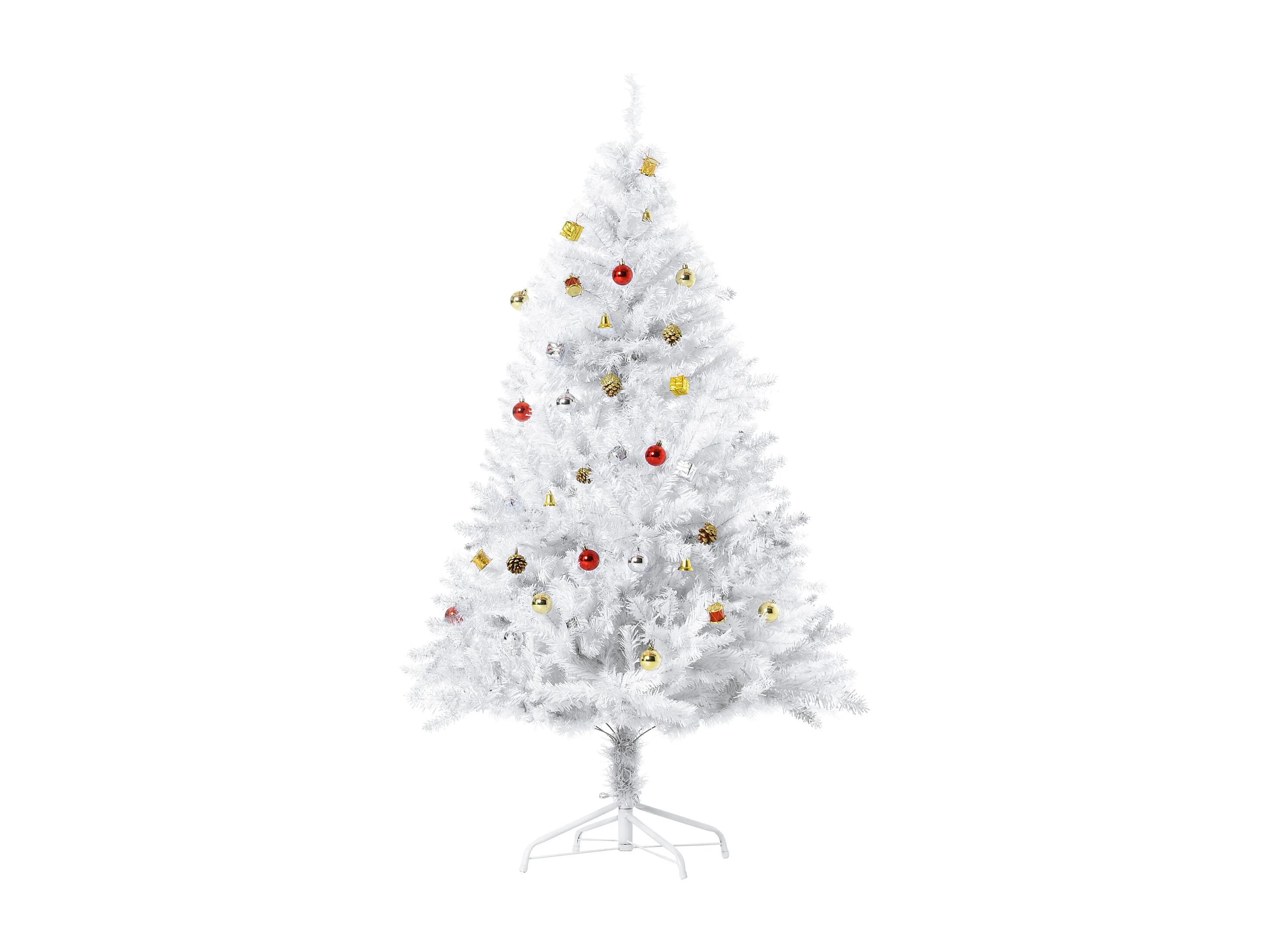 Albero di natale con addobbi e rami in pvc bianco