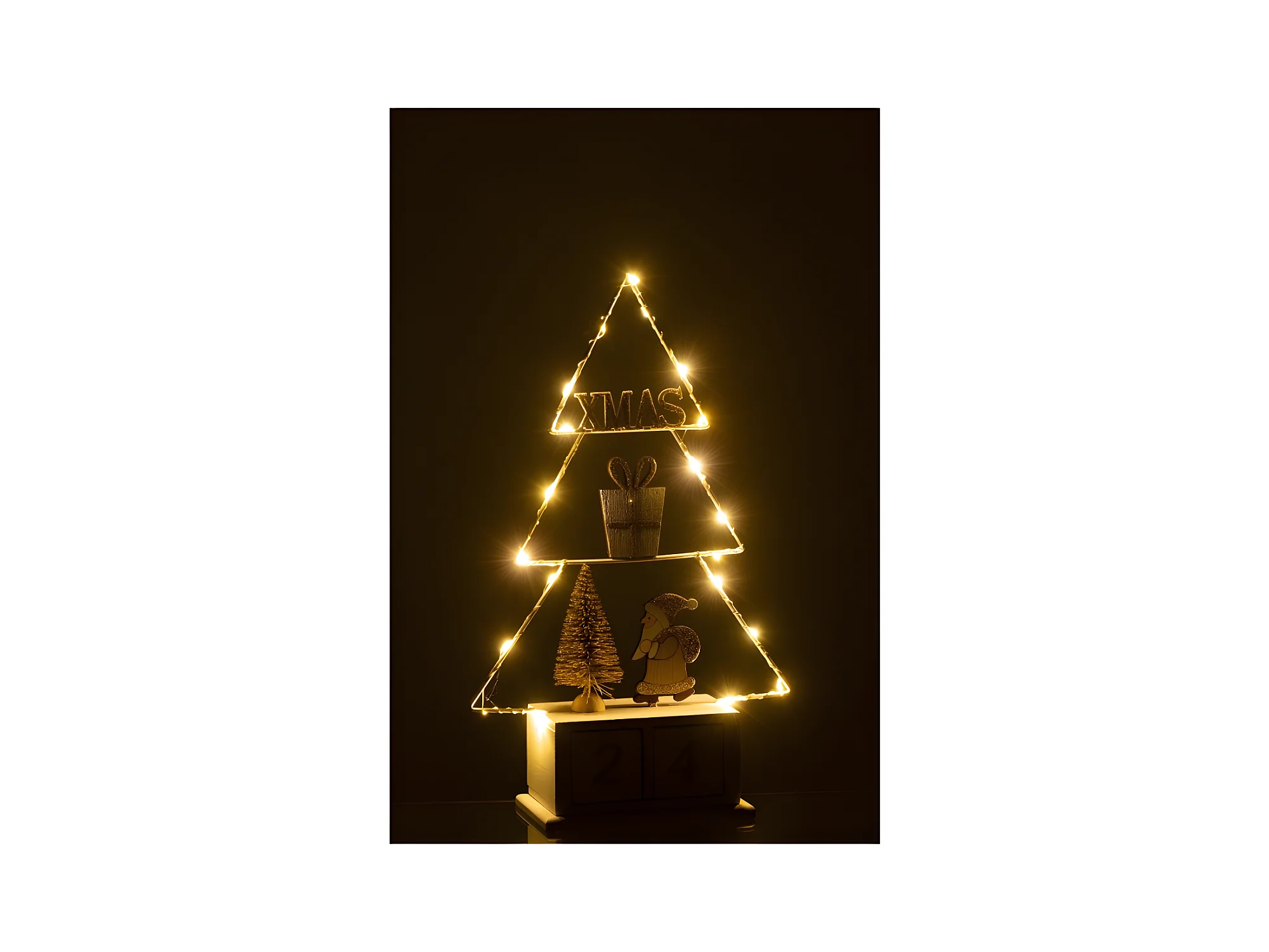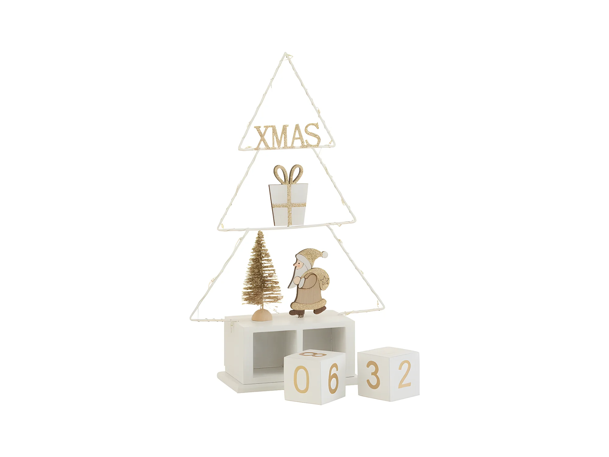 Albero di Natale con calendario e luci in legno bianco 31x18x7.5 cm