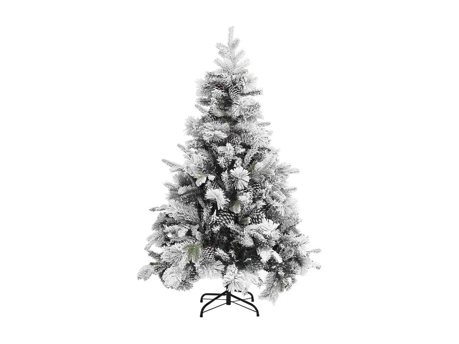 Albero di Natale con fiocchi di neve e pigne 150 cm PVC/PE