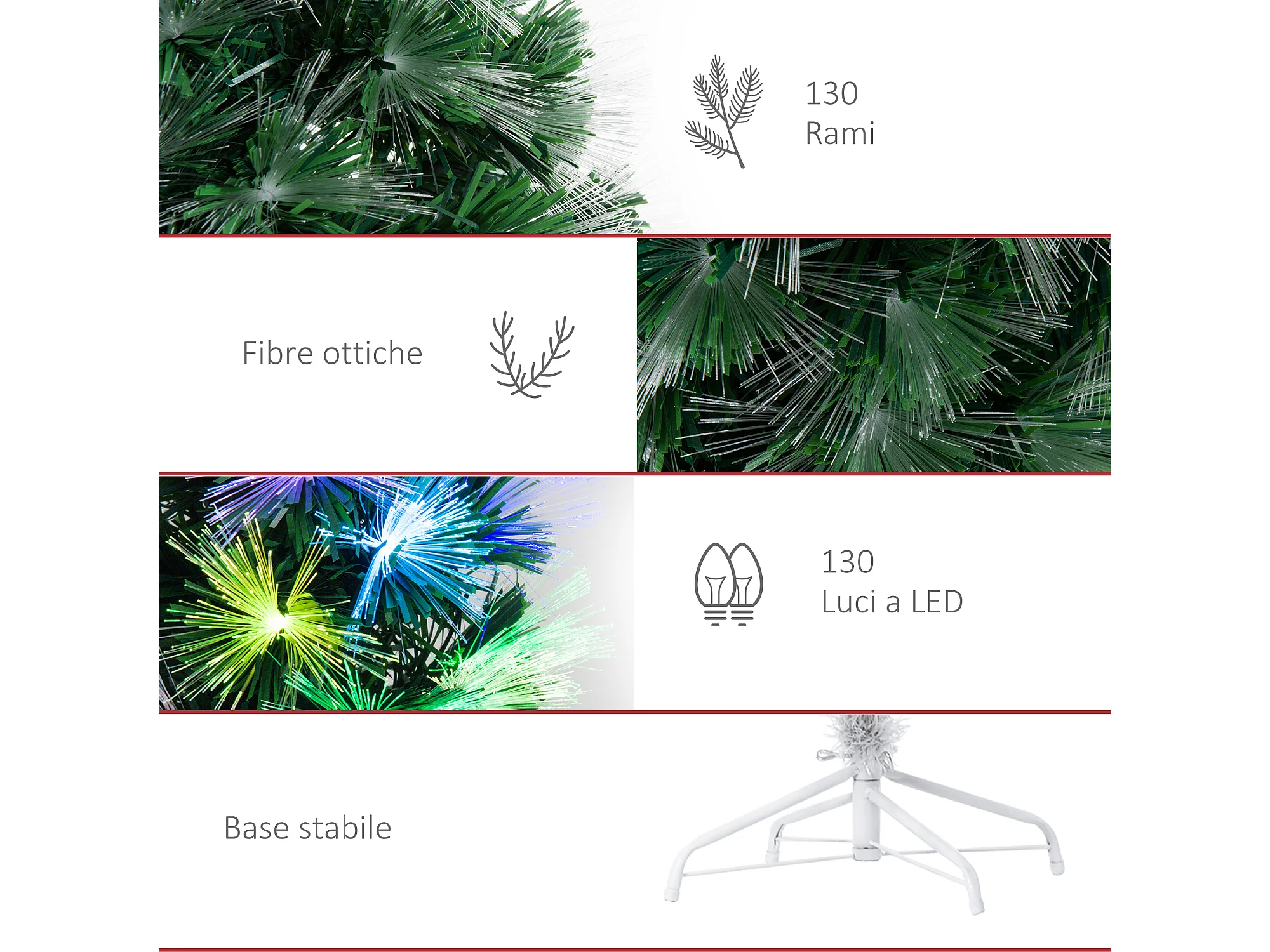 Albero di natale con led e fibre ottiche in pvc verde