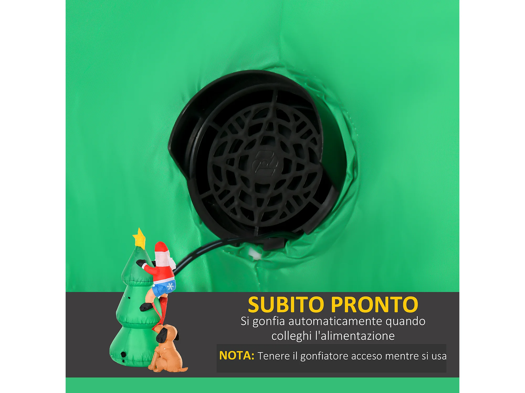 Albero di natale gonfiabile con babbo natale con 7 luci led