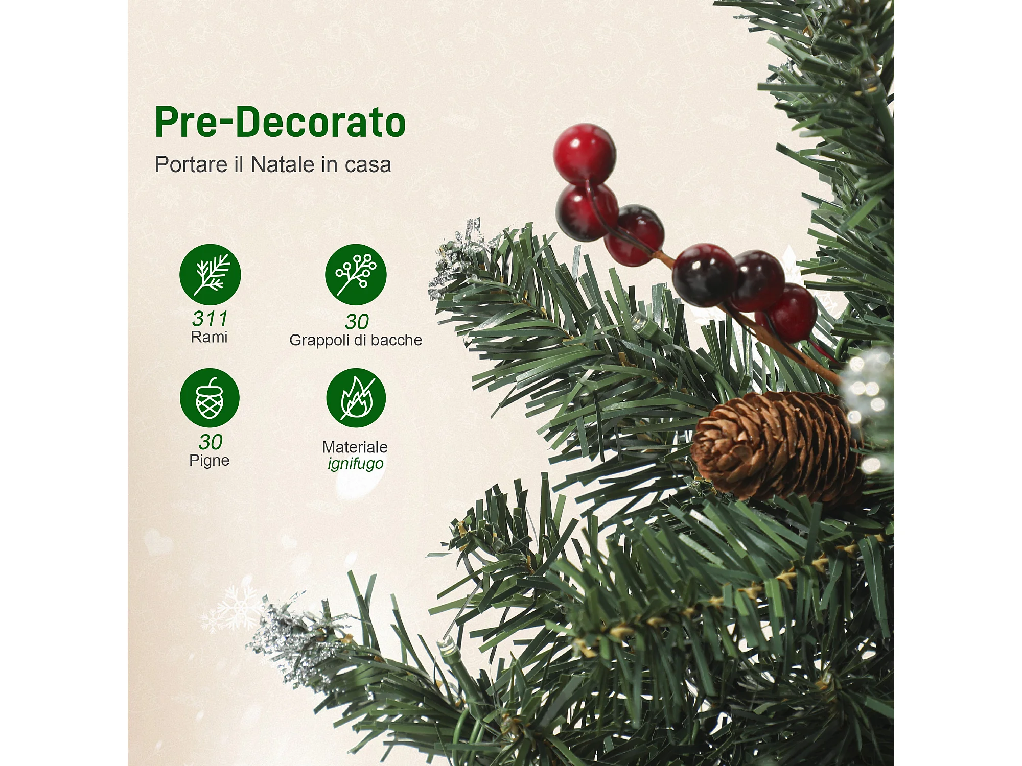 Albero di natale artificiale alto 150 cm e base in metallo pieghevole