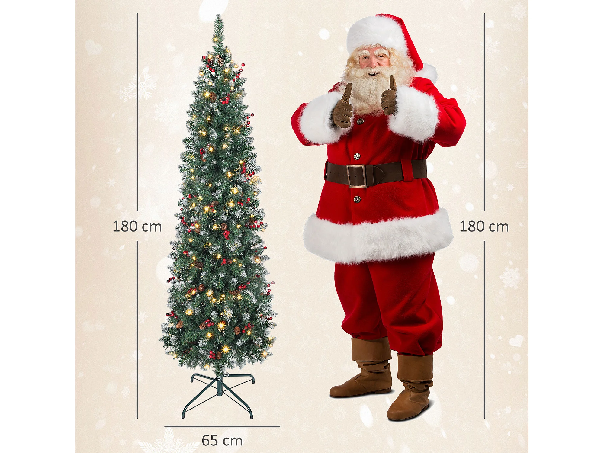Albero di natale innevato con 180 luci led Ø65x180 cm, verde e bianco