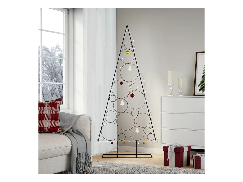 Albero Natale con Fiocchi di Neve a LED Nero 180cm Fibra Ottica