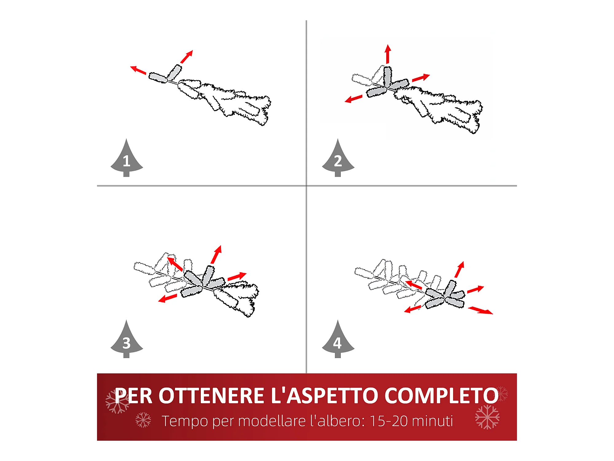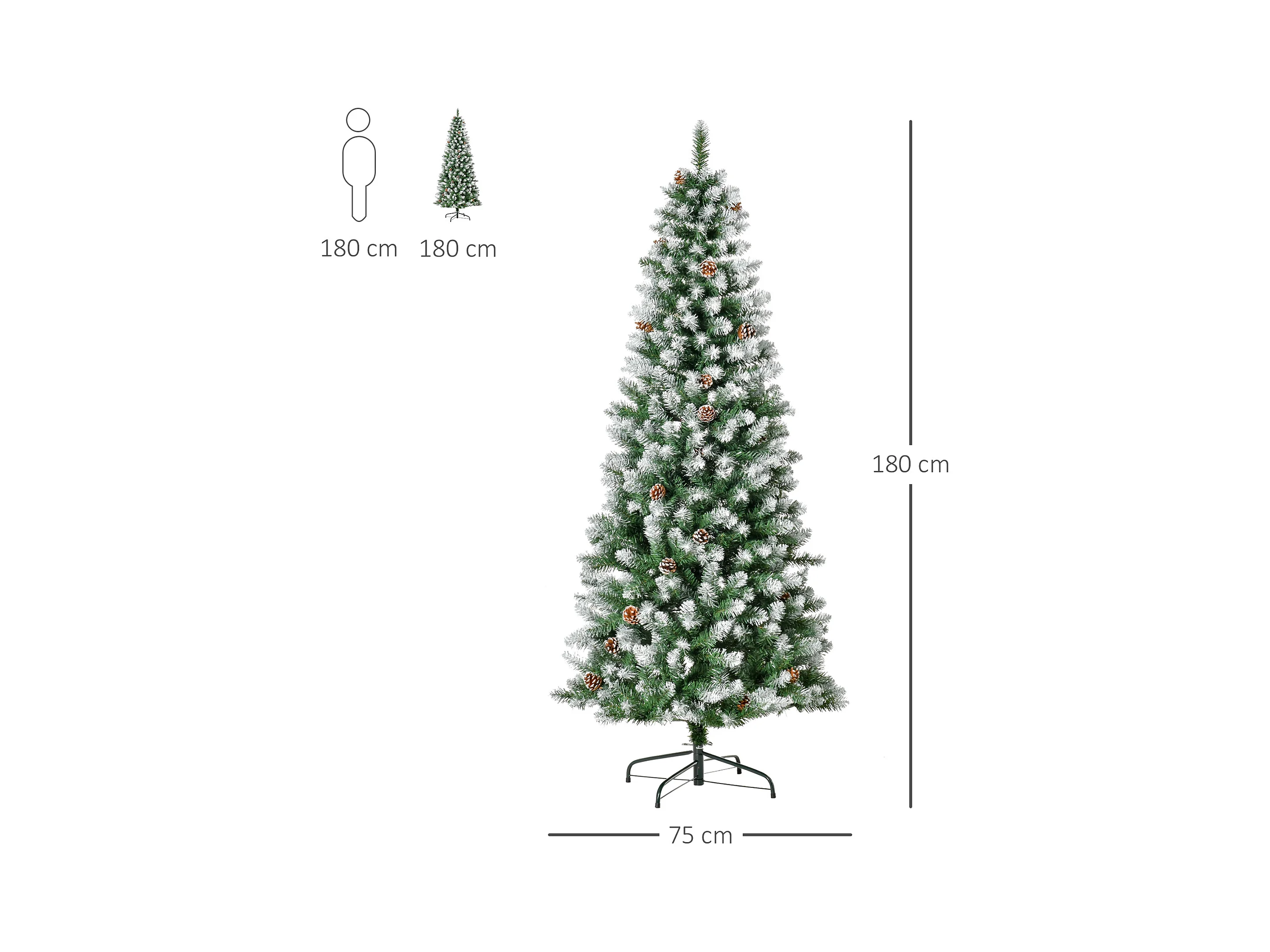 Albero di natale innevato 180 cm con 630 rami e 37 pigne verde bianco