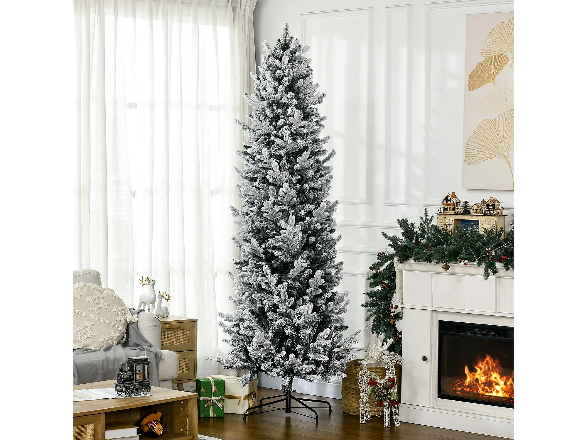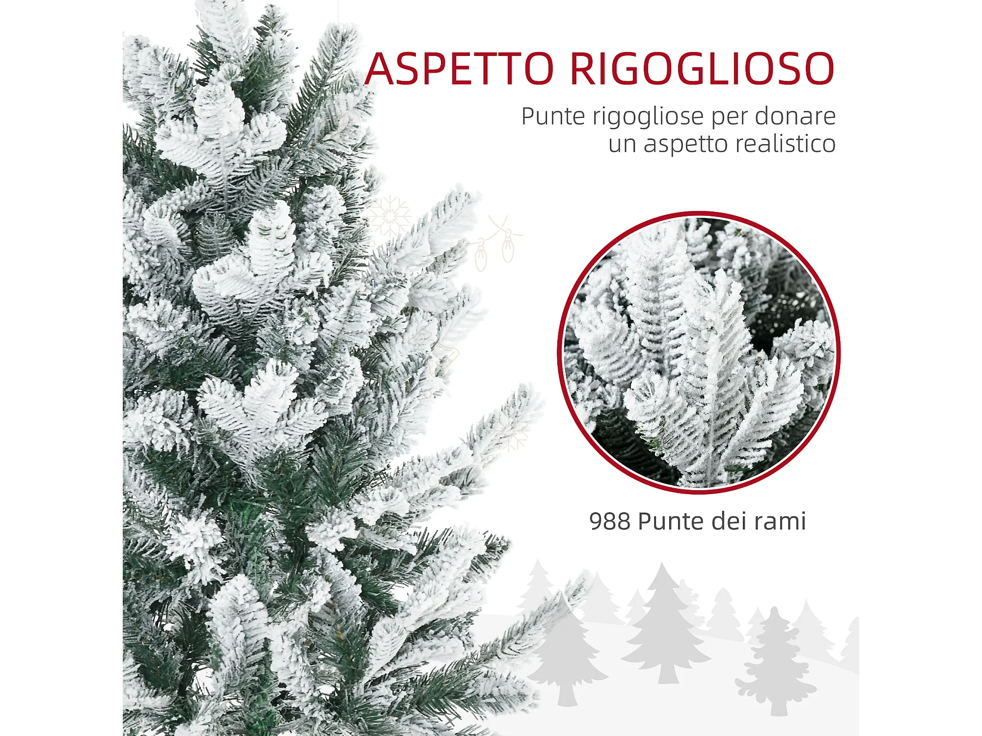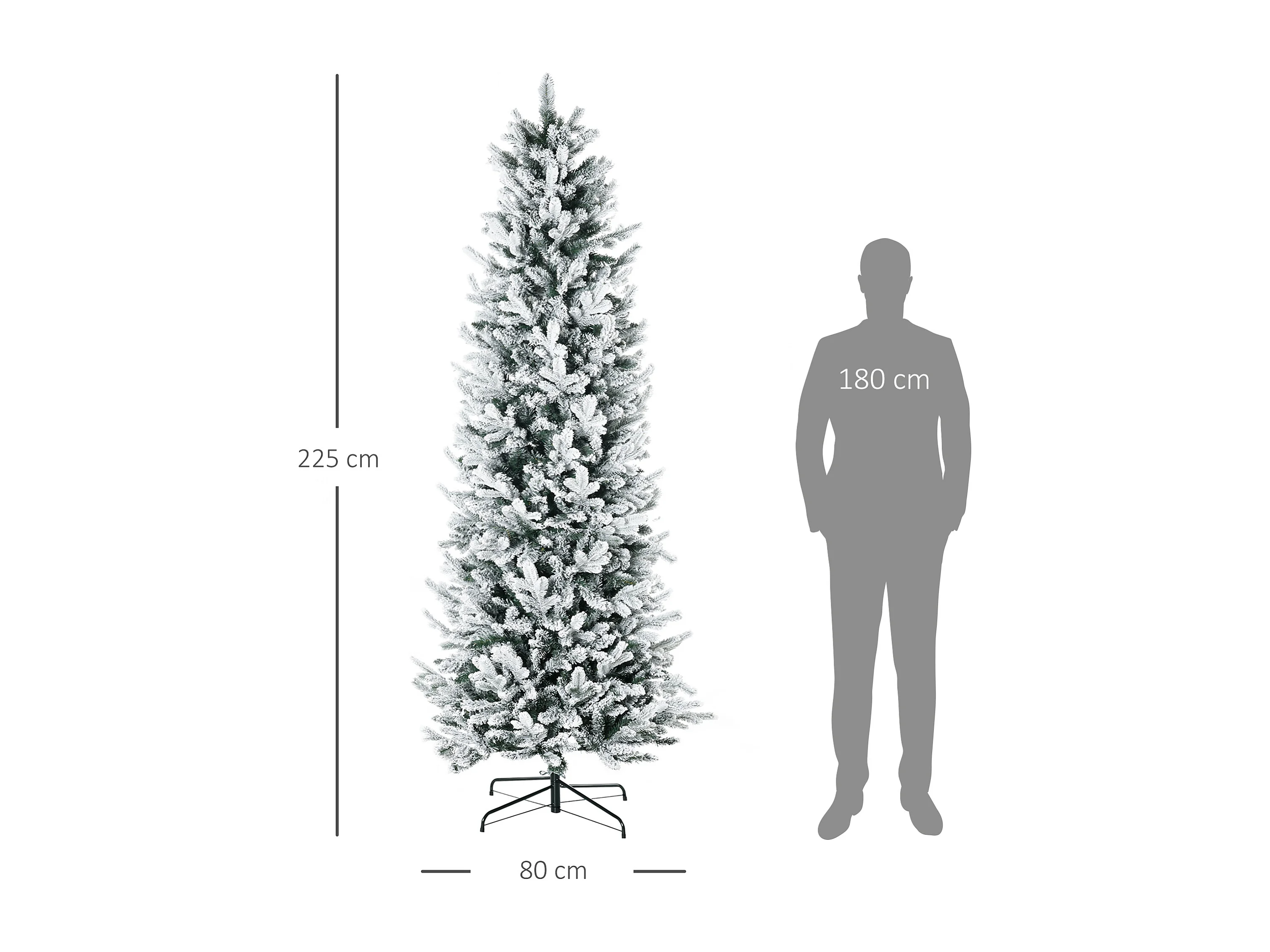 Albero di Natale Innevato 225cm con 988 Rami e Base in Acciaio