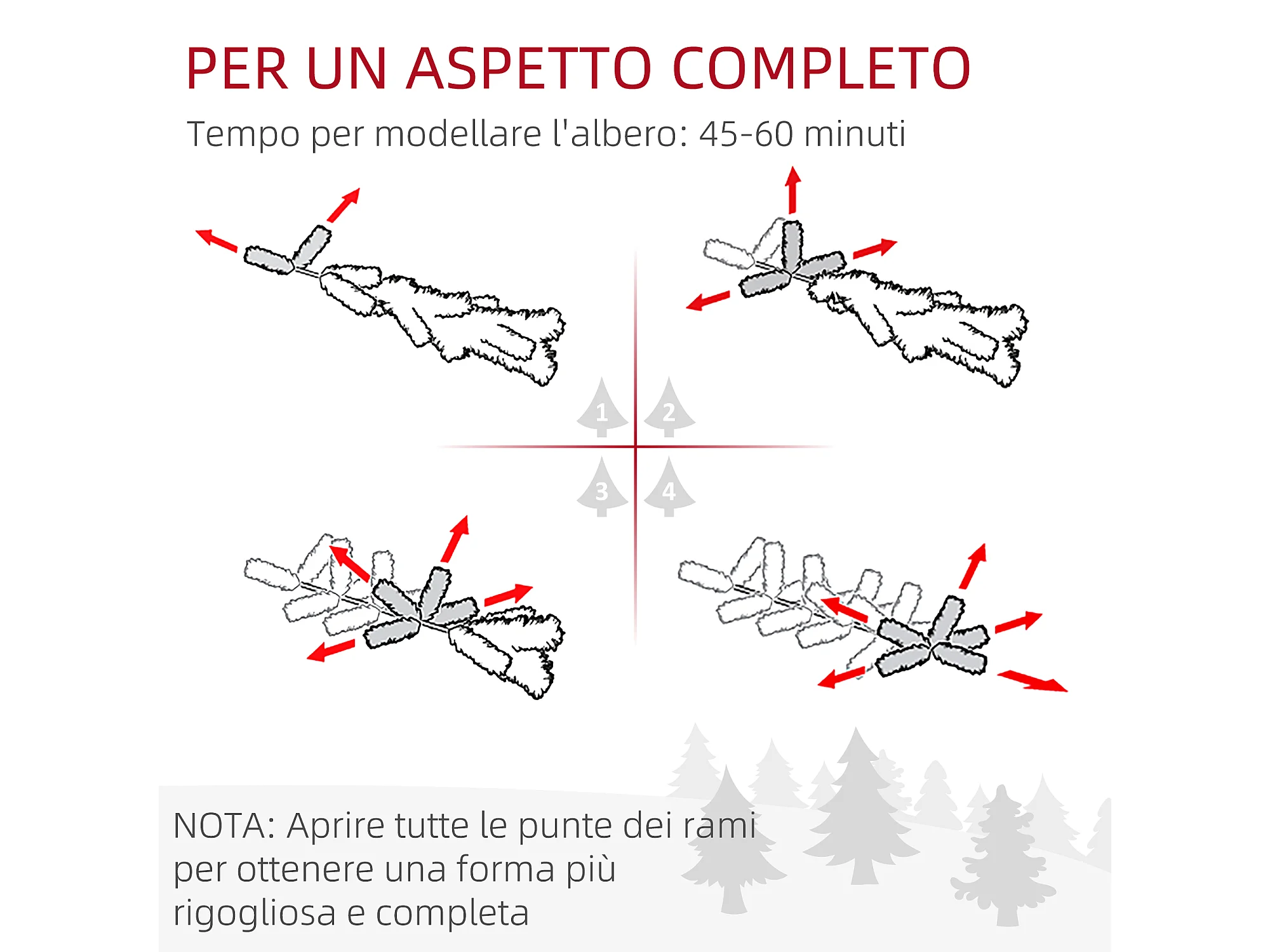 Albero di natale alto 150 cm con 398 rami pigne e bacche decorative