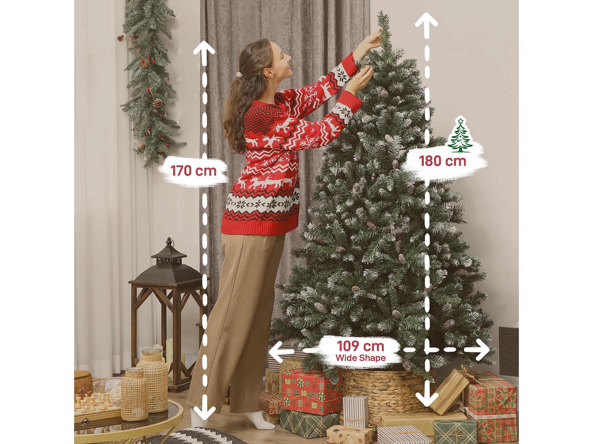 Albero di natale artificiale 180cm con luci e 793 rami innevati