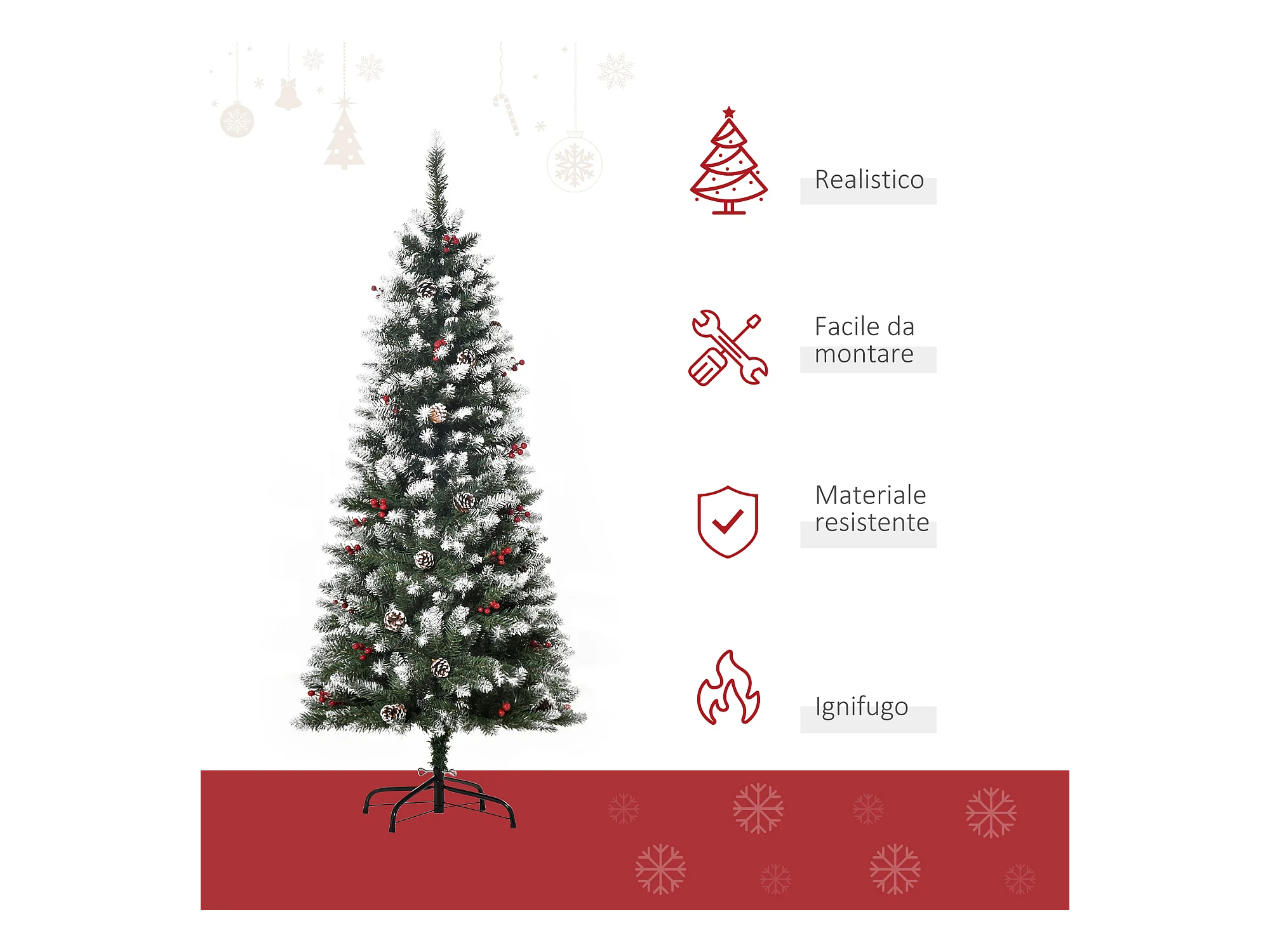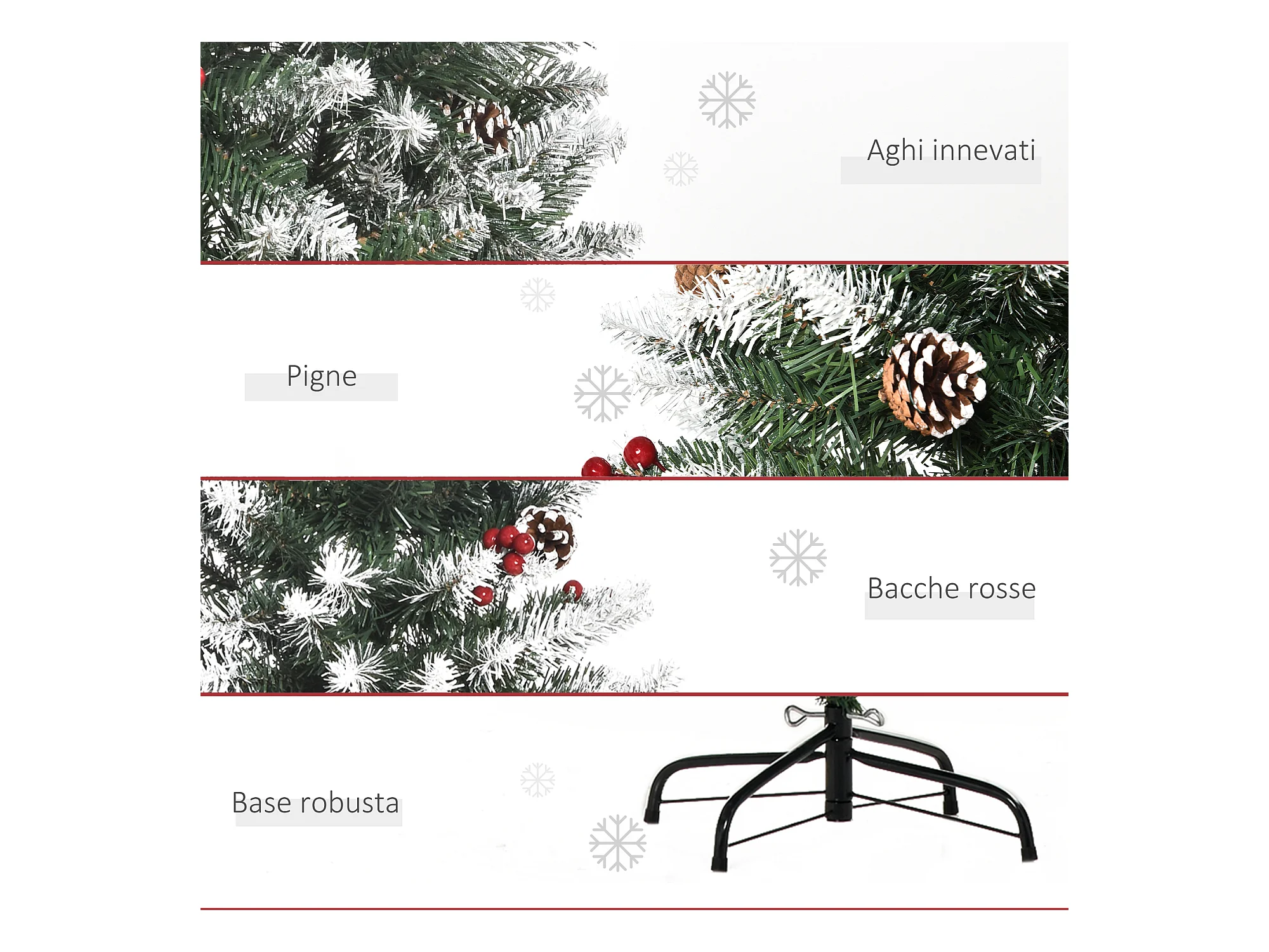 Albero di Natale artificiale innevato alto 150cm con pigne