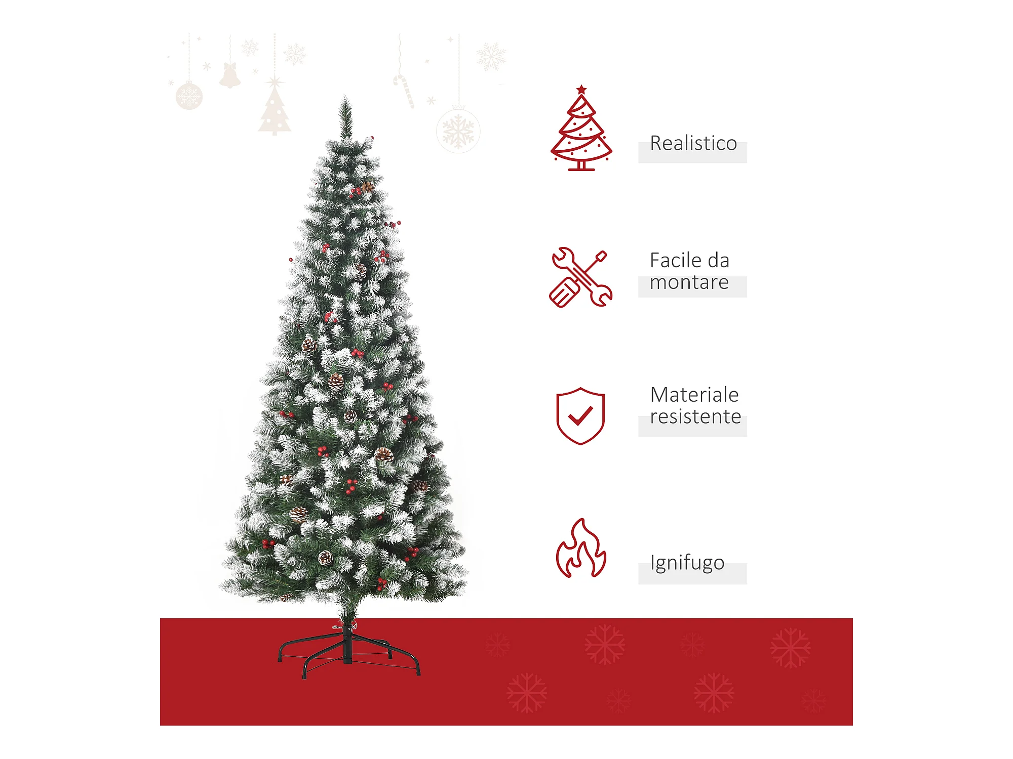 Albero Natale Artificiale Sottile Supporto 180 cm Fibra Ottica