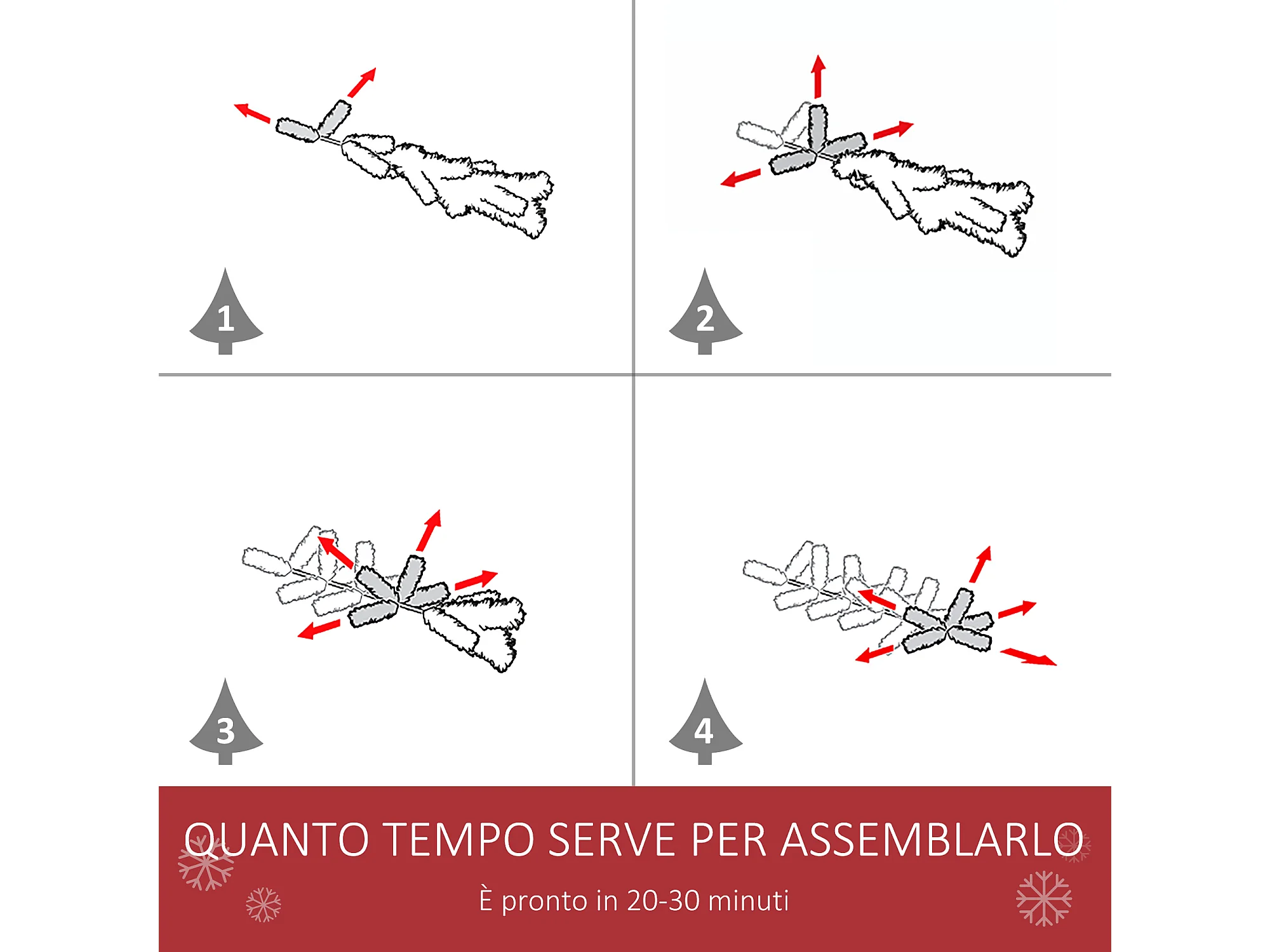 Albero di natale innevato artificiale da 180cm base pieghevole