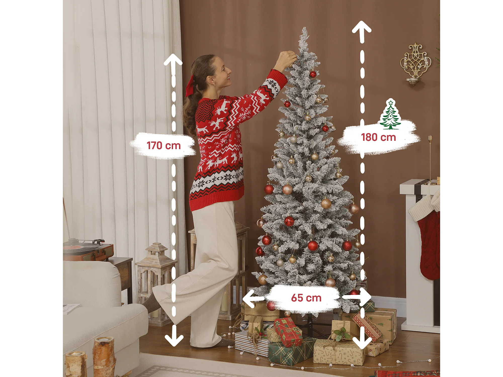 Albero di Natale Artificiale con 300 LED e Neve Floccata 180 cm