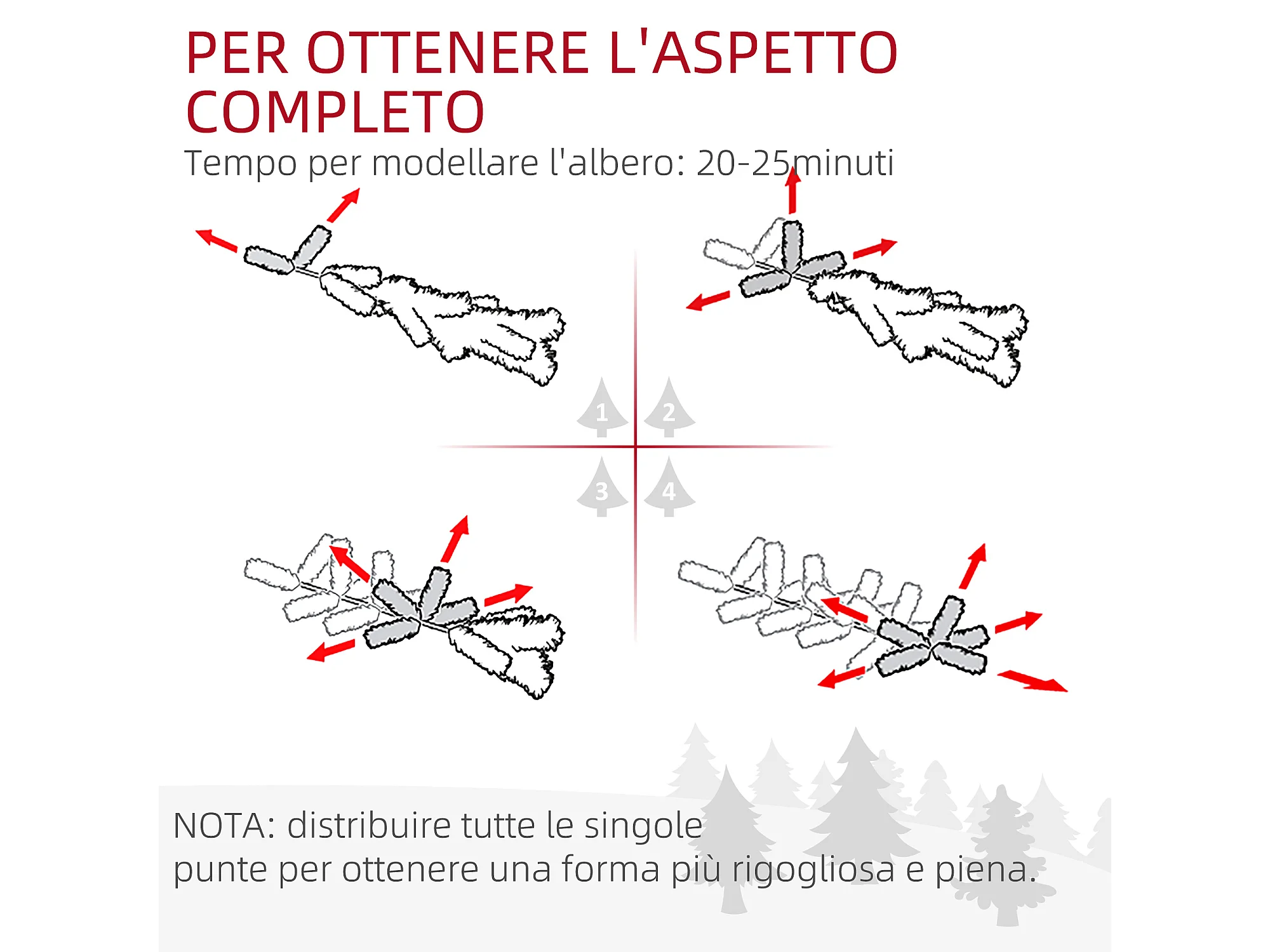 Albero di natale artificiale alto 180 cm e base in metallo pieghevole
