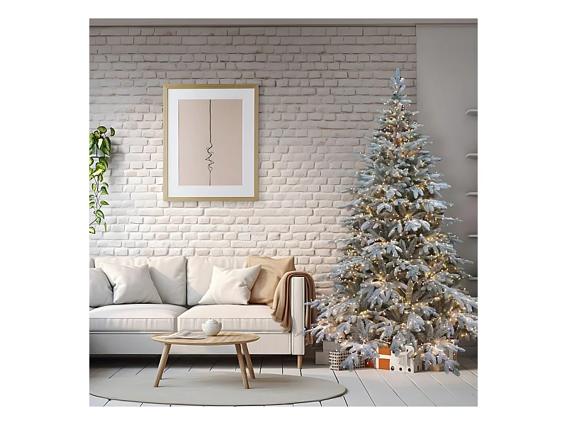 Albero di Natale innevato "Sistem flok" con micro led in PE effetto Real Touch + PVC + Flock 240 cm