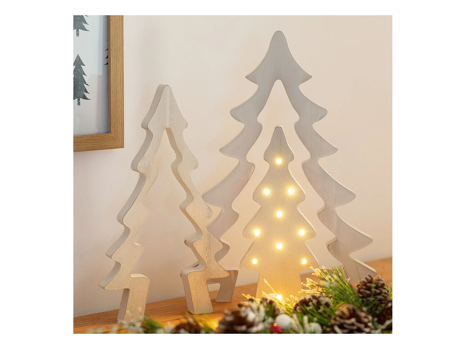 Albero di Natale LED Legno a Pile Kolm Bianco