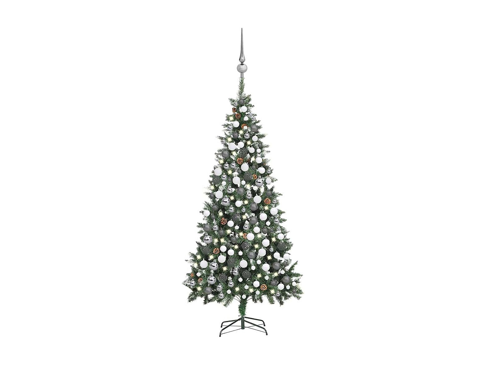 Albero di Natale Preilluminato con Palline e Pigne 210 cm