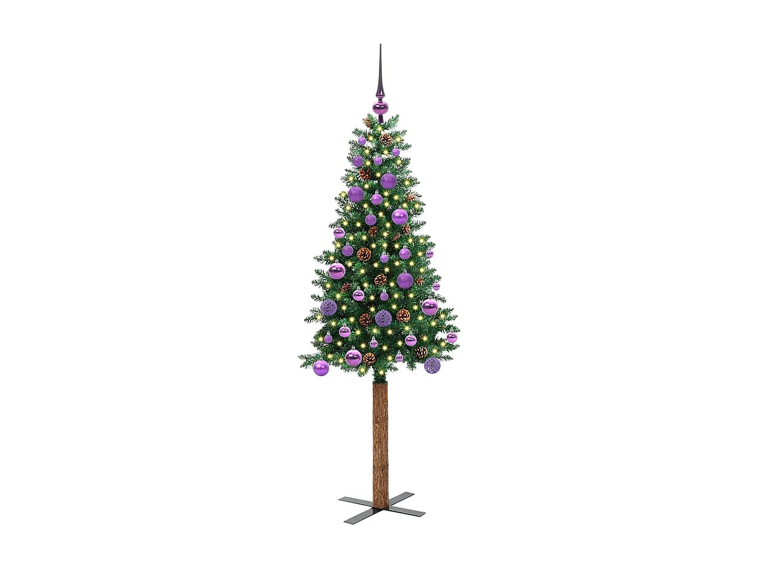 Albero di Natale verde sottile 150 cm in PVC e legno di pino massiccio