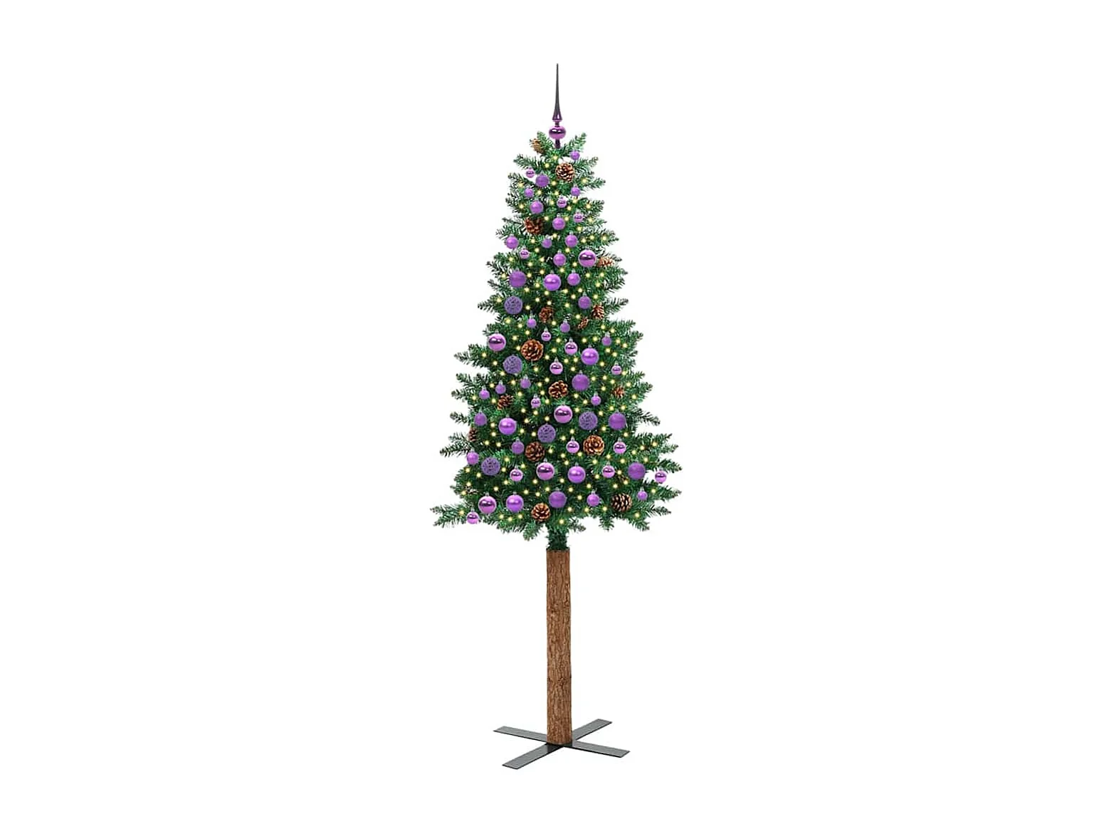 Albero di Natale verde sottile 210 cm in PVC e legno di pino massiccio