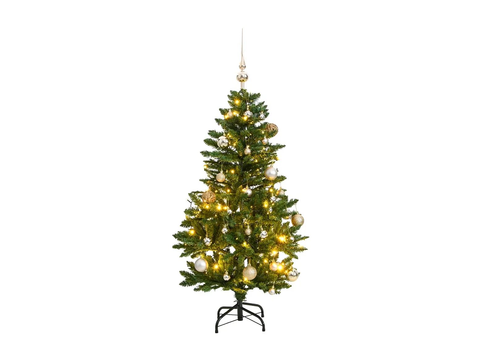Albero Natale Incernierato con 150 LED e Palline 120 cm