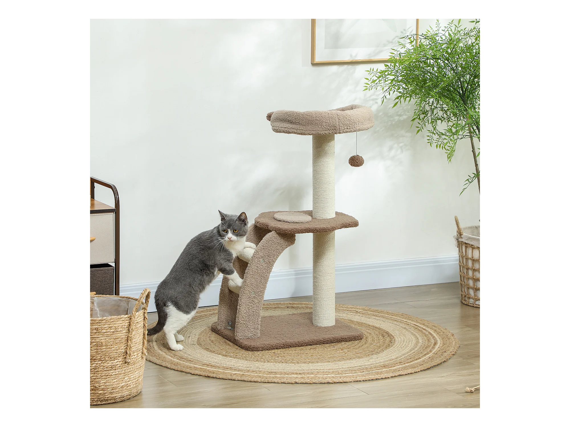 Albero tiragraffi per gatti con lettino in peluche e pali sisal marrone
