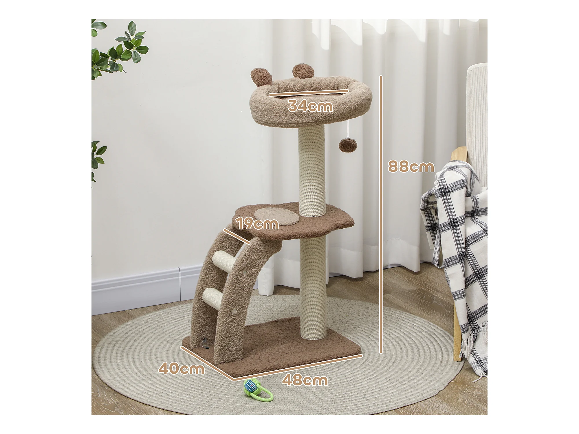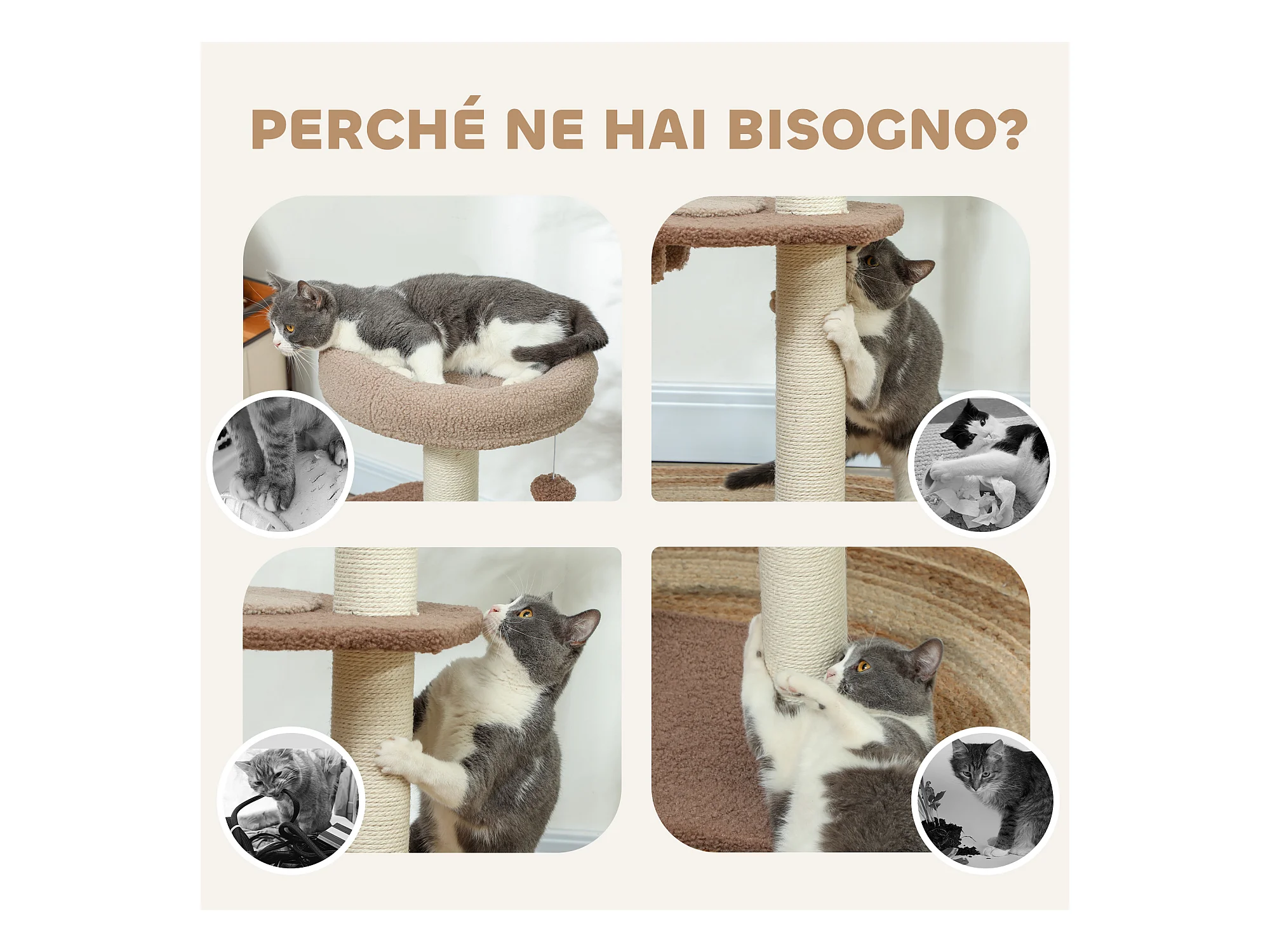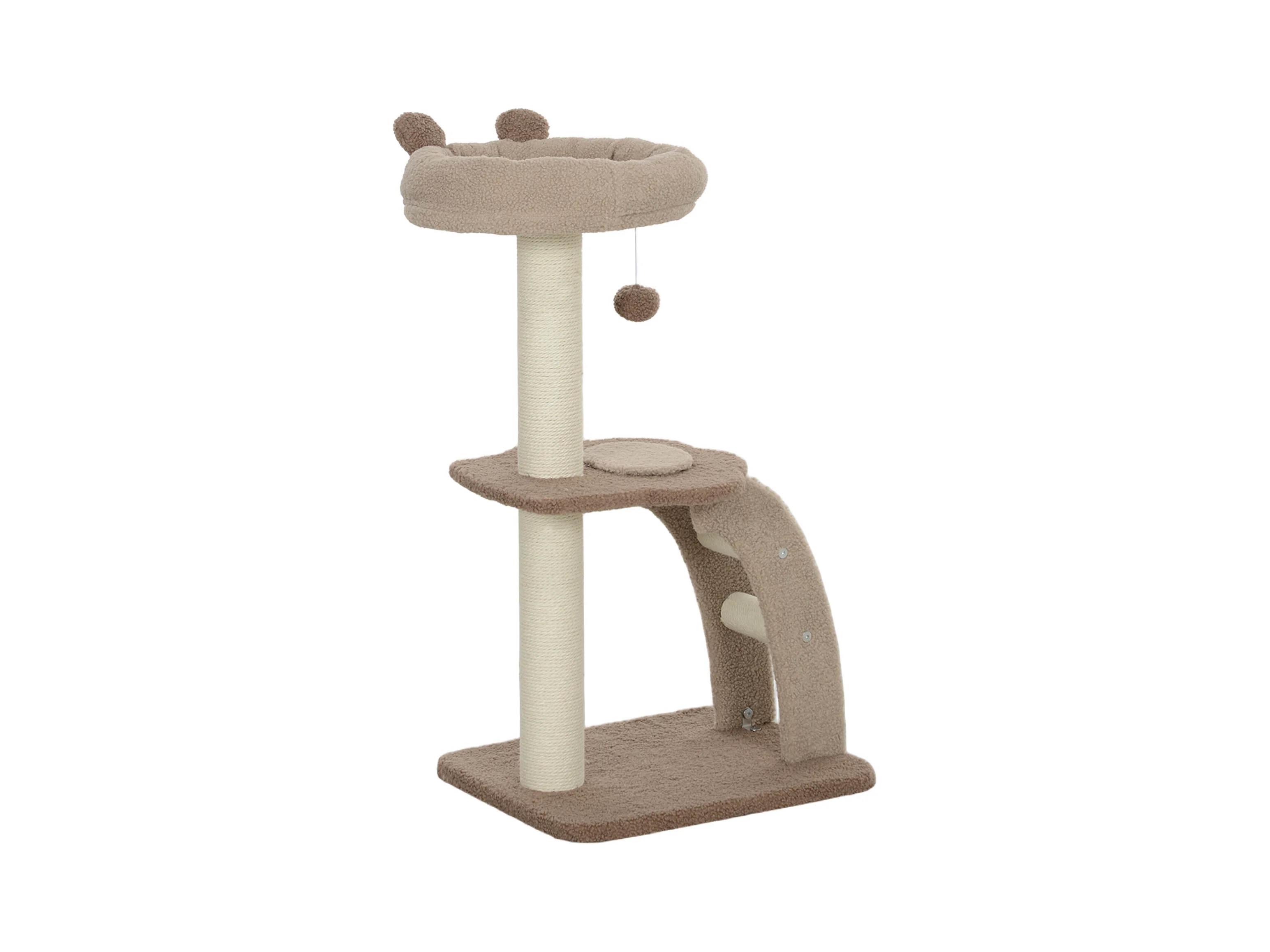 Tiragraffi per gatti 5kg max con lettino e pallina da gioco marrone beige