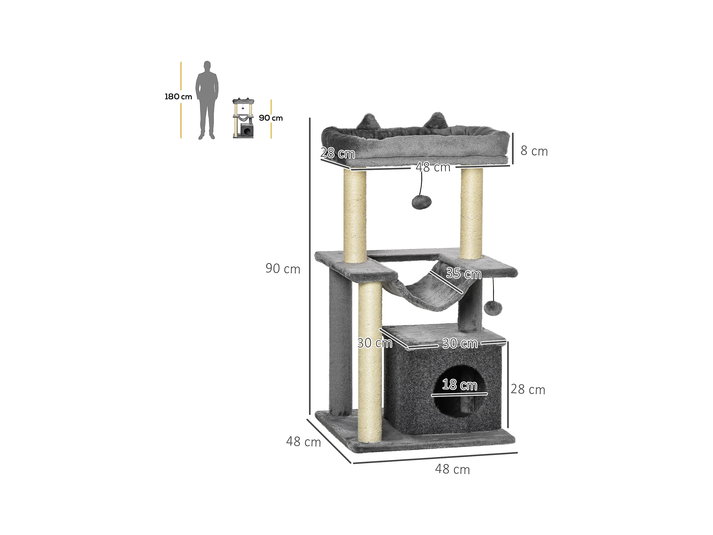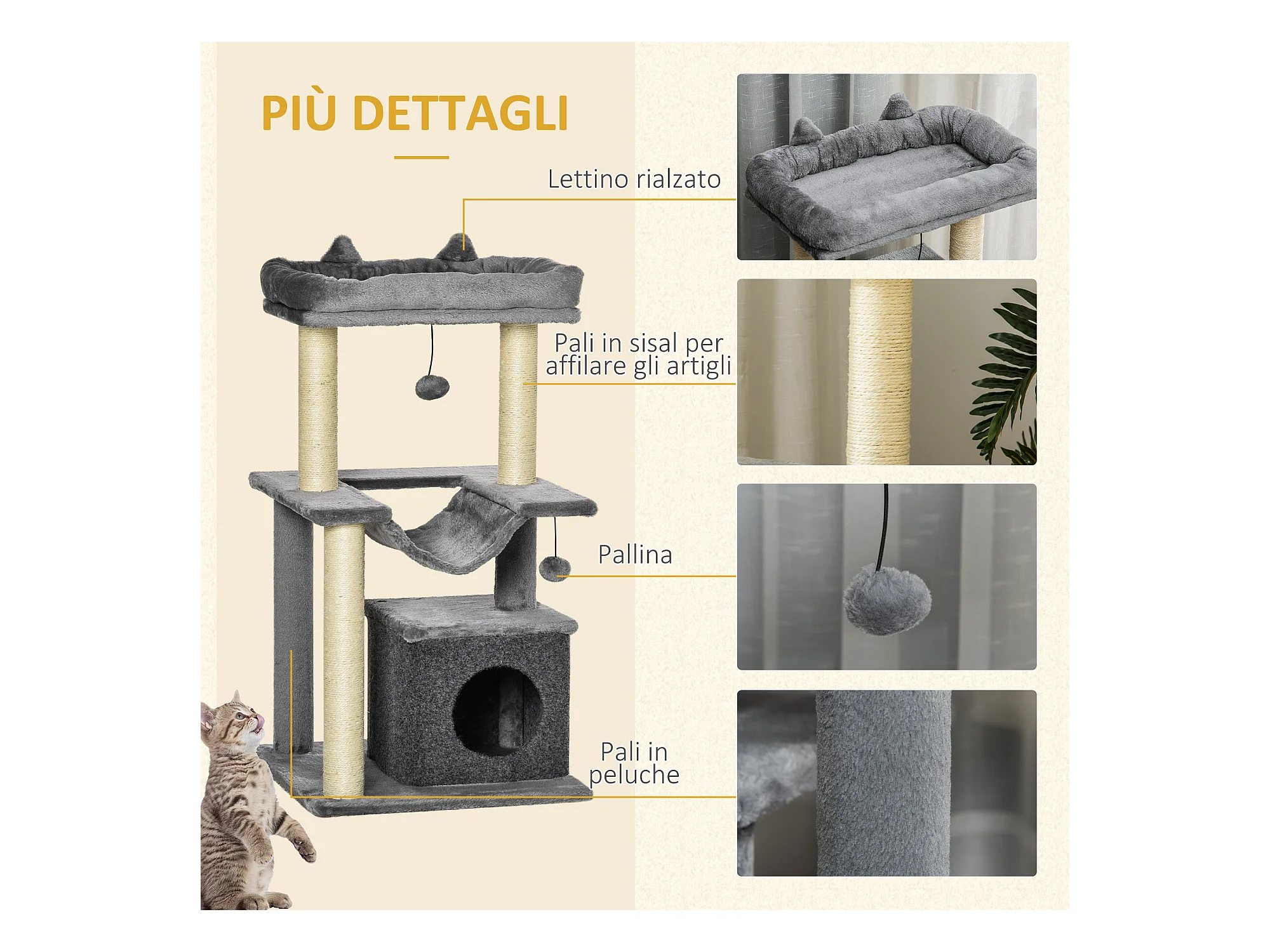 Albero per gatti alto 90cm tiragraffi in sisal casetta cuscino amaca