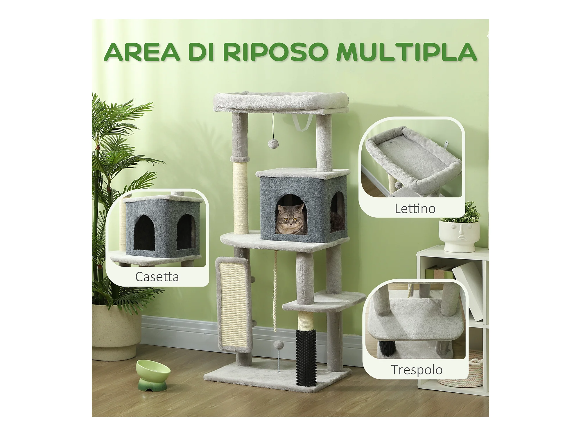 Albero tiragraffi per gatti da 132cm con 4 livelli grigio