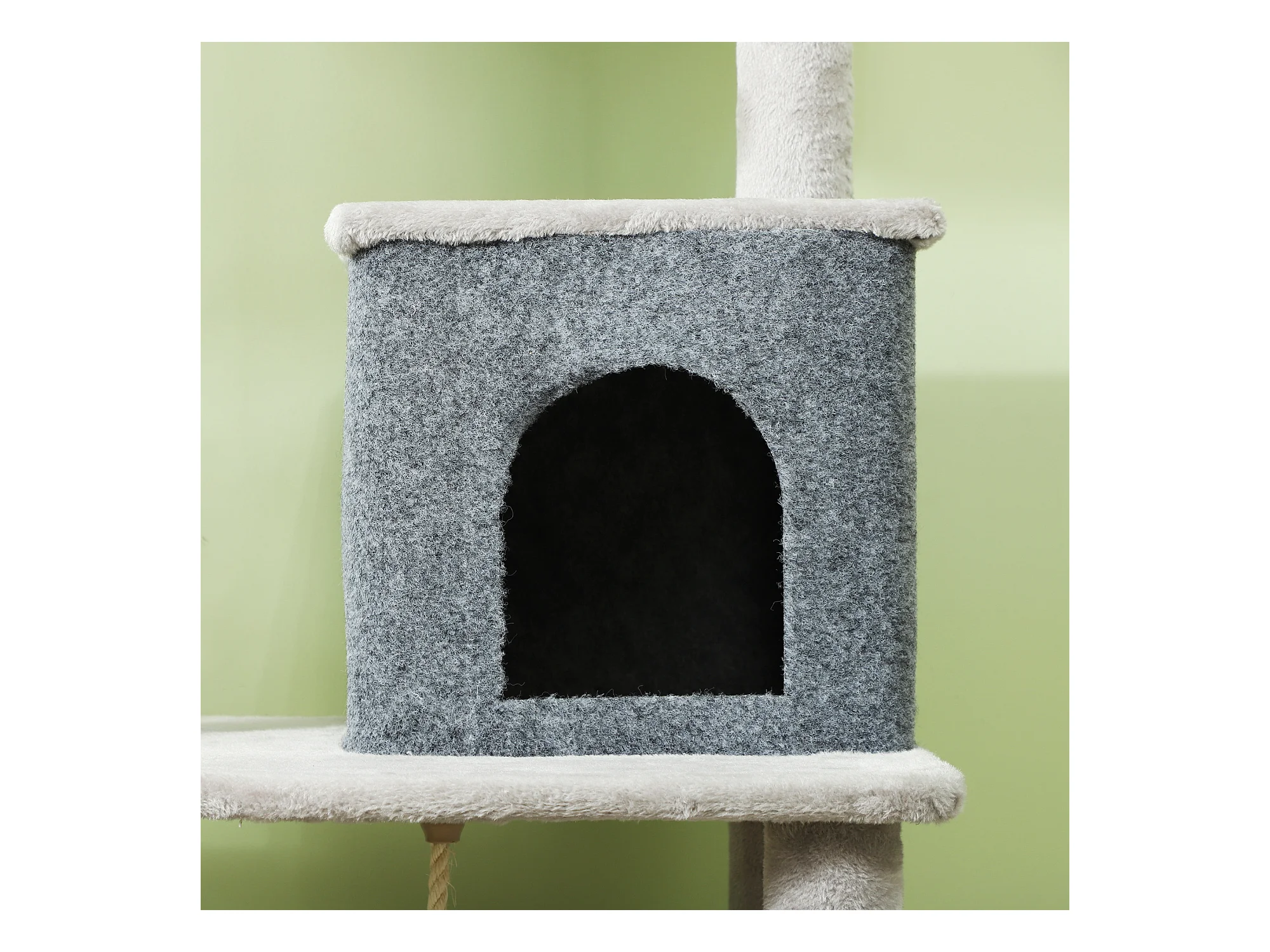 Albero per gatti con amaca lettino casette e posatoi grigio e bianco