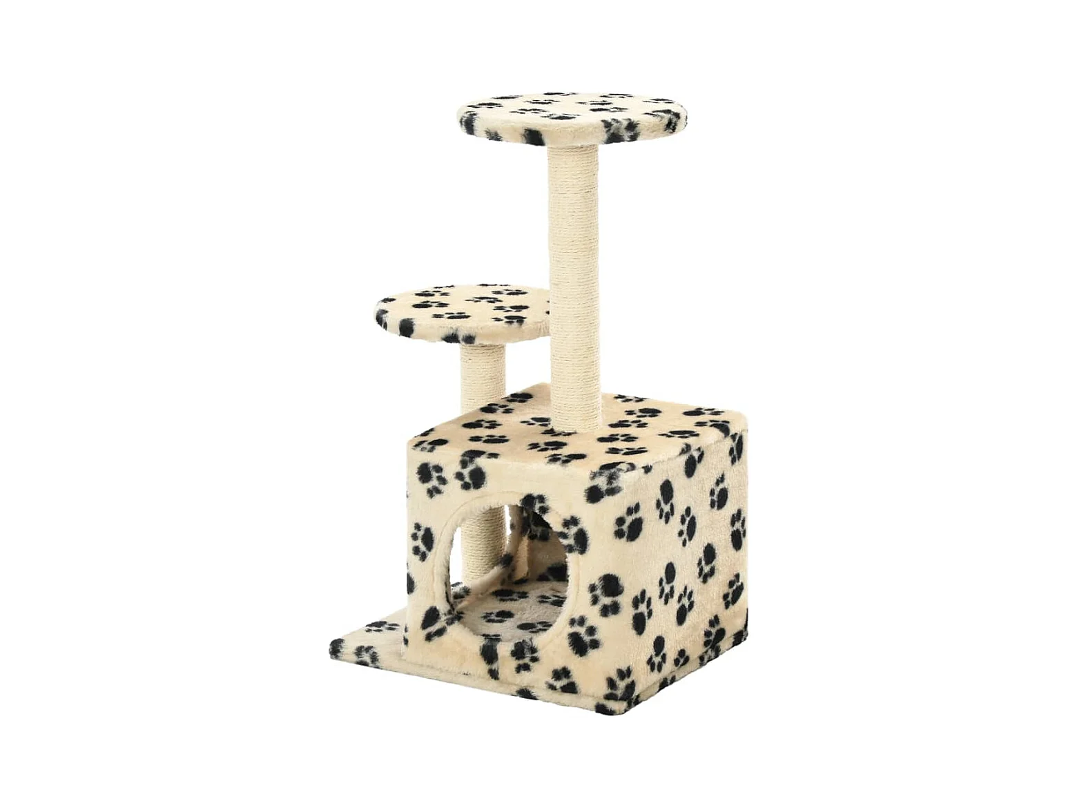 Albero per Gatti e Tiragraffi Sisal 60 cm Zampe Stampate Beige